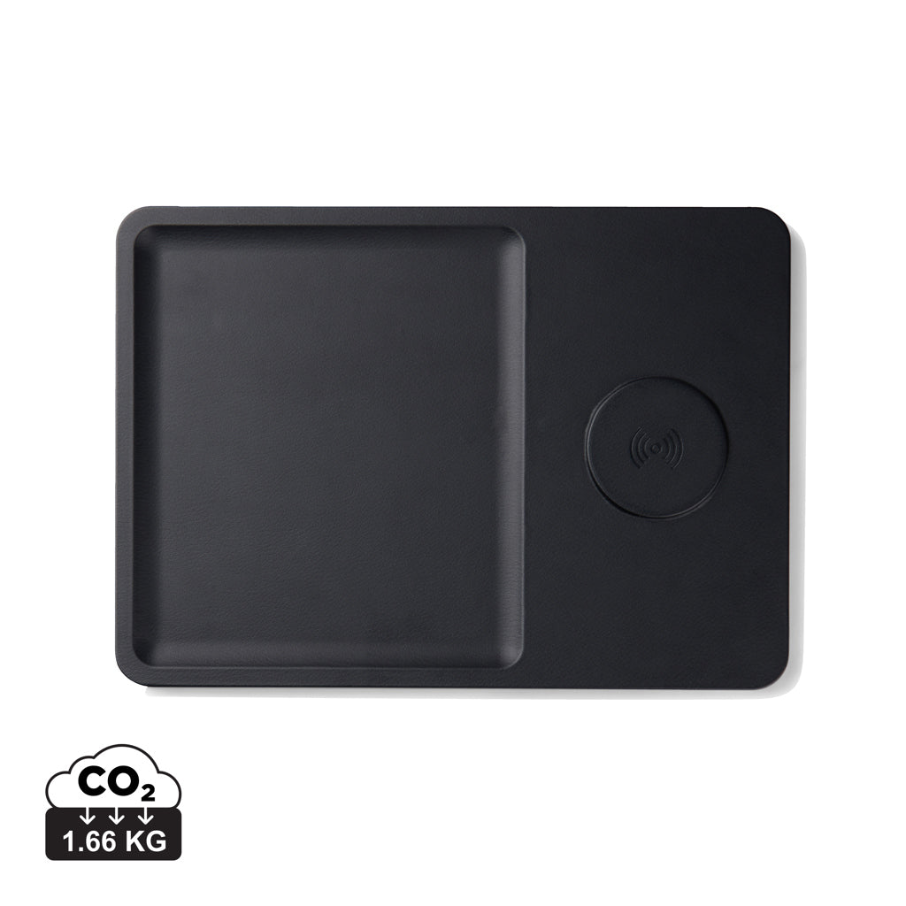 En praktisk og elegant bordoplader – perfekt til det moderne hjem eller kontor. Bakken har en integreret trådløs opladningsplade til din telefon. For at oplade skal du blot tilslutte bakken med det medfølgende USB-C til USB-C-kabel (1,2 m). Når den er tilsluttet, skal du blot placere din telefon på pladen for at starte opladningen. Bakken fungerer også som en praktisk overflade til opbevaring af dagligdags ting som hovedtelefoner, briller eller nøgler. En enkel og funktionel løsning – ideel til skriveborde, gangmøbler eller natborde. Type-C-indgang: 9 V 2 A min. Trådløs udgang: 5 W/7,5 W/10 W/15 W maks. Certificeret af RCS (Recycled Claim Standard), hvilket garanterer, at hele forsyningskæden af genanvendte materialer er certificeret. Dette produkt indeholder 47% RCS-certificeret genanvendt ABS og 4% RCS-certificeret genanvendt polyester.