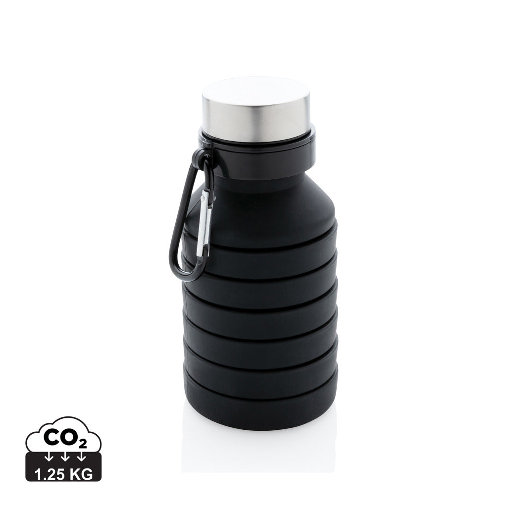 Spar 50% plads takket være denne smart designede foldbare silikone flaske. Med en kapacitet på 550 ml kan du slukke tørsten under dine udendørs aktiviteter. Lavet af 100% fødevaregodkendt silikone materiale, er fleksibel og nem at rengøre. Den medfølgende karabin tillader dig at fastgøre den til f.eks. en taske. BPA fri.