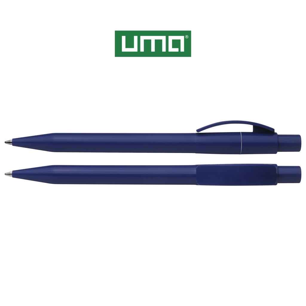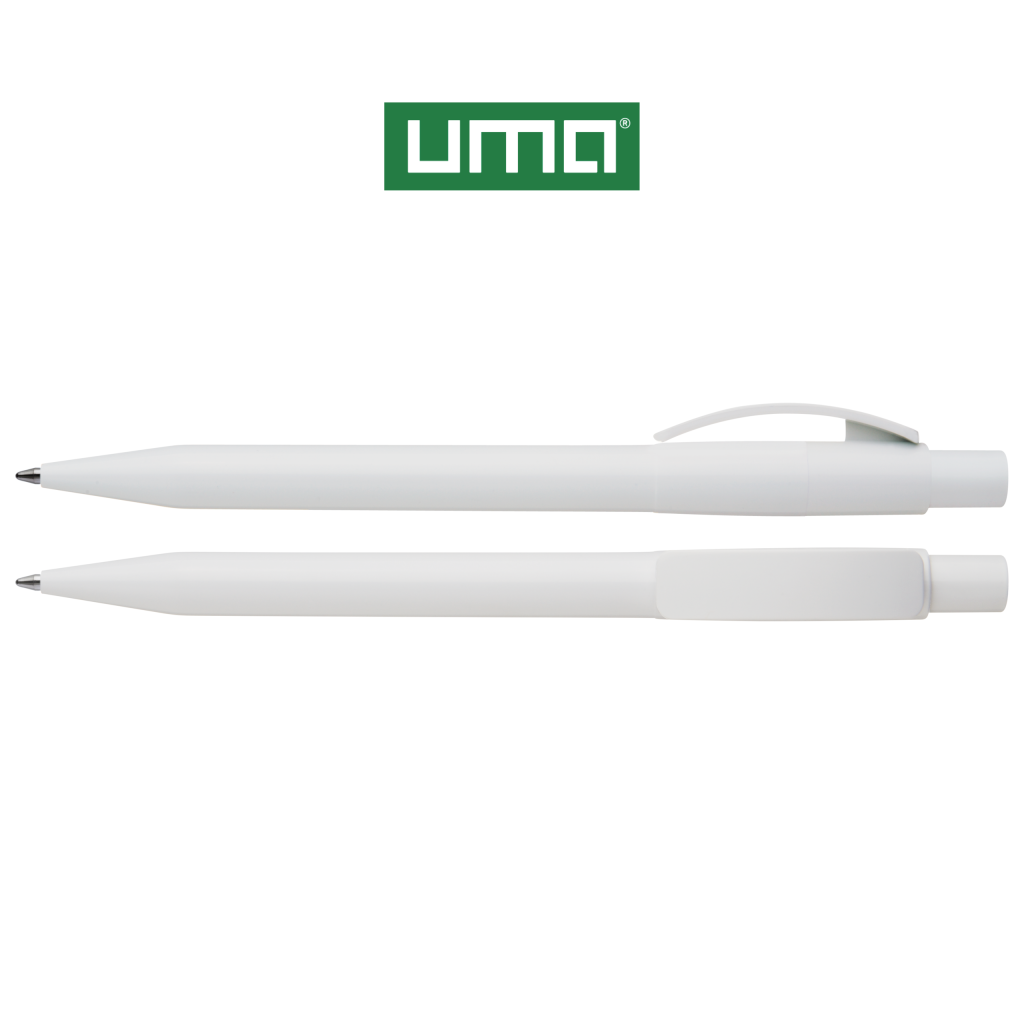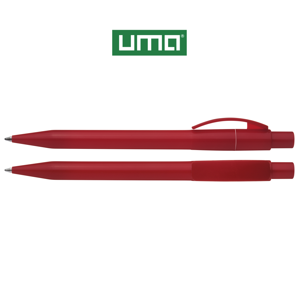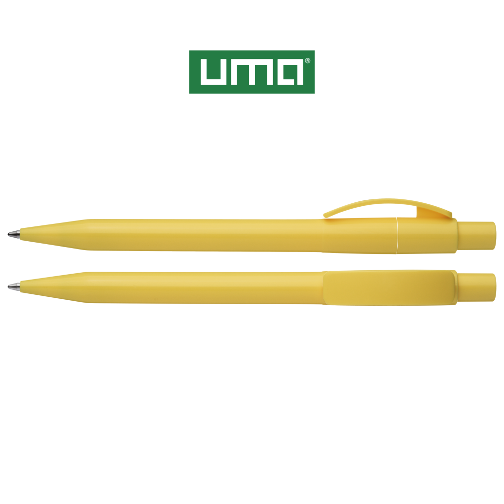 Retractable ballpoint pen with opaque glossy housing, curved clip and push-button.