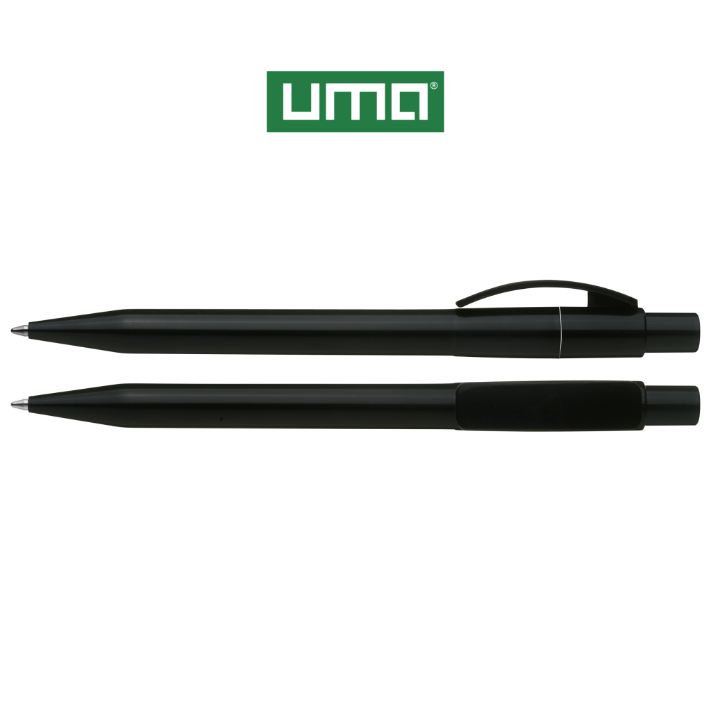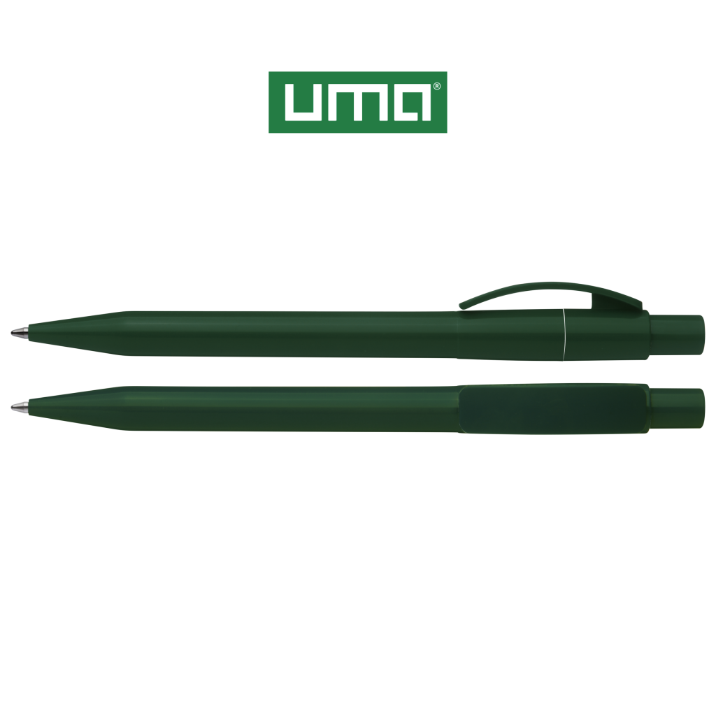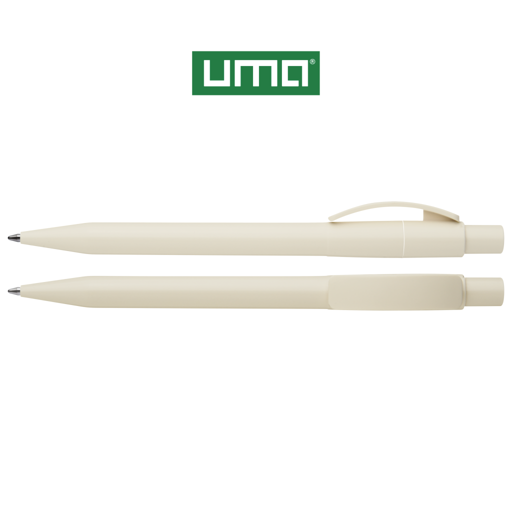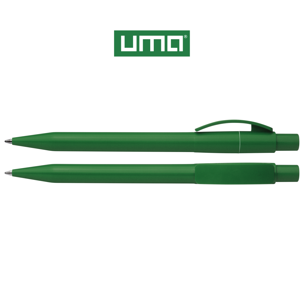 Retractable ballpoint pen with opaque glossy housing, curved clip and push-button.