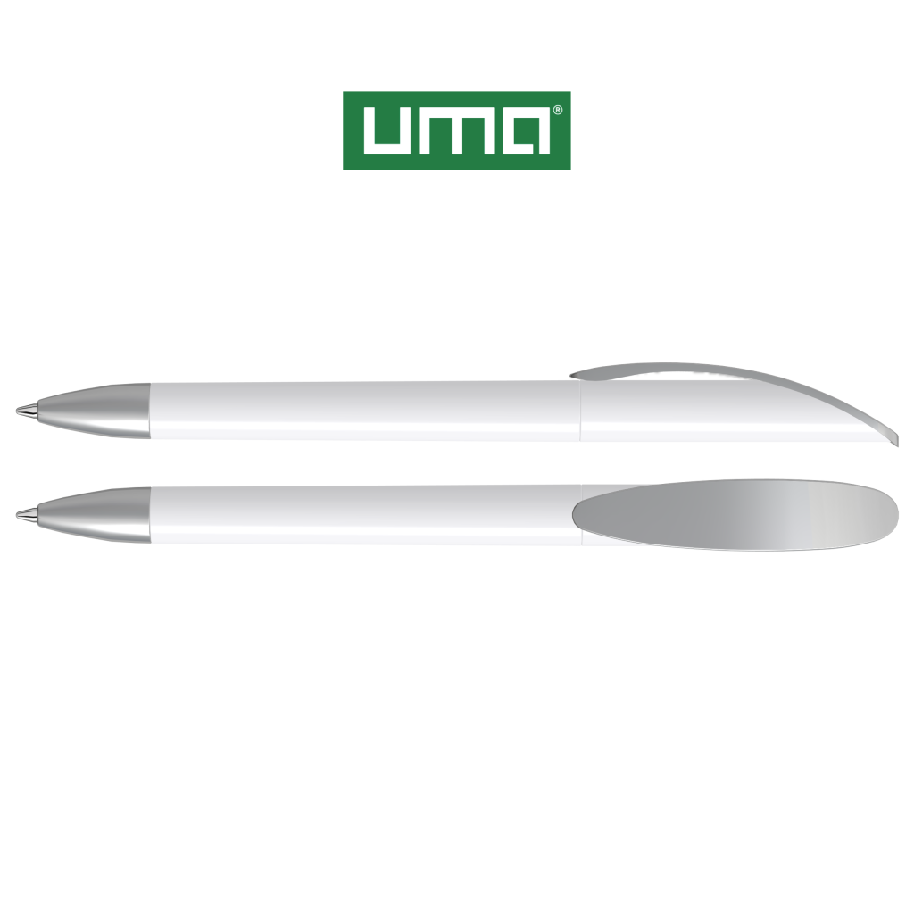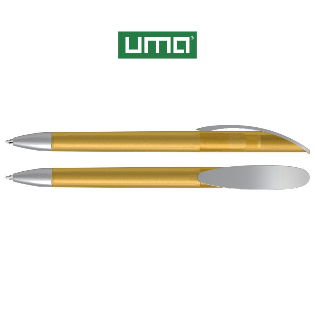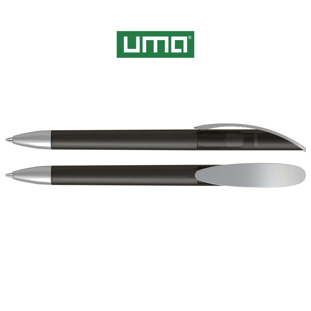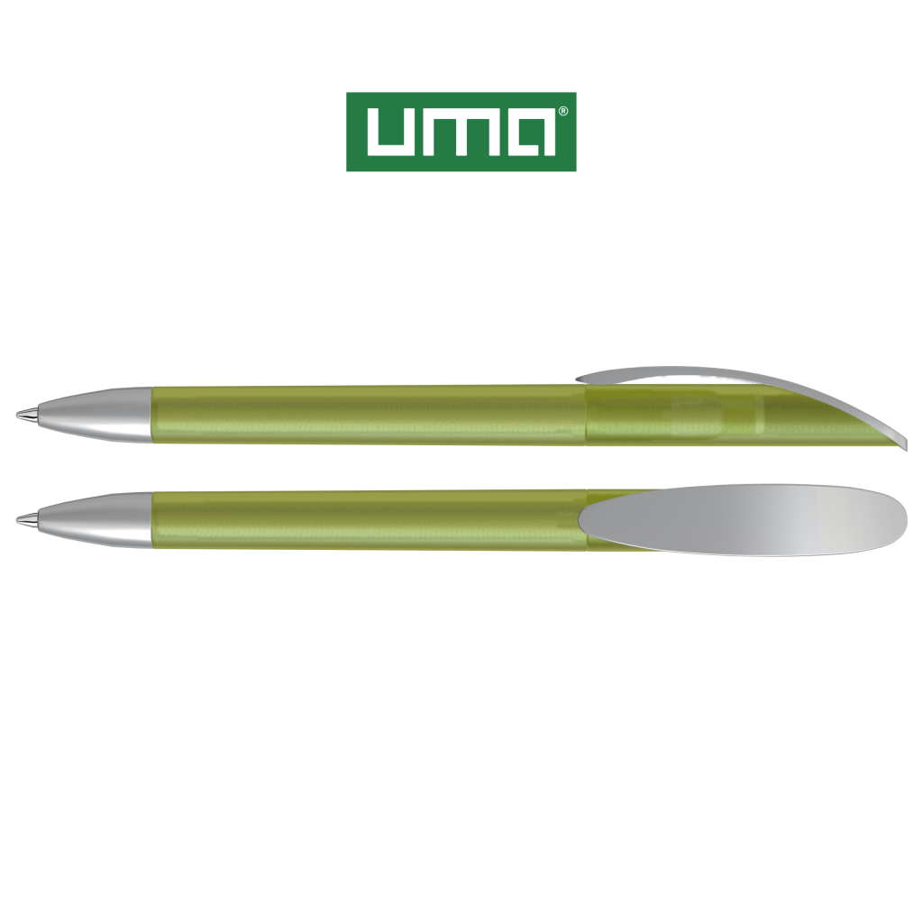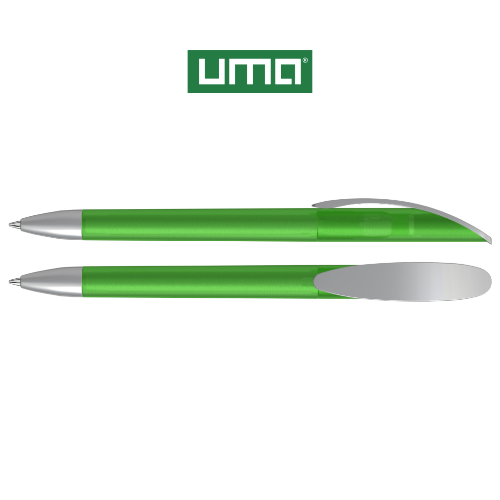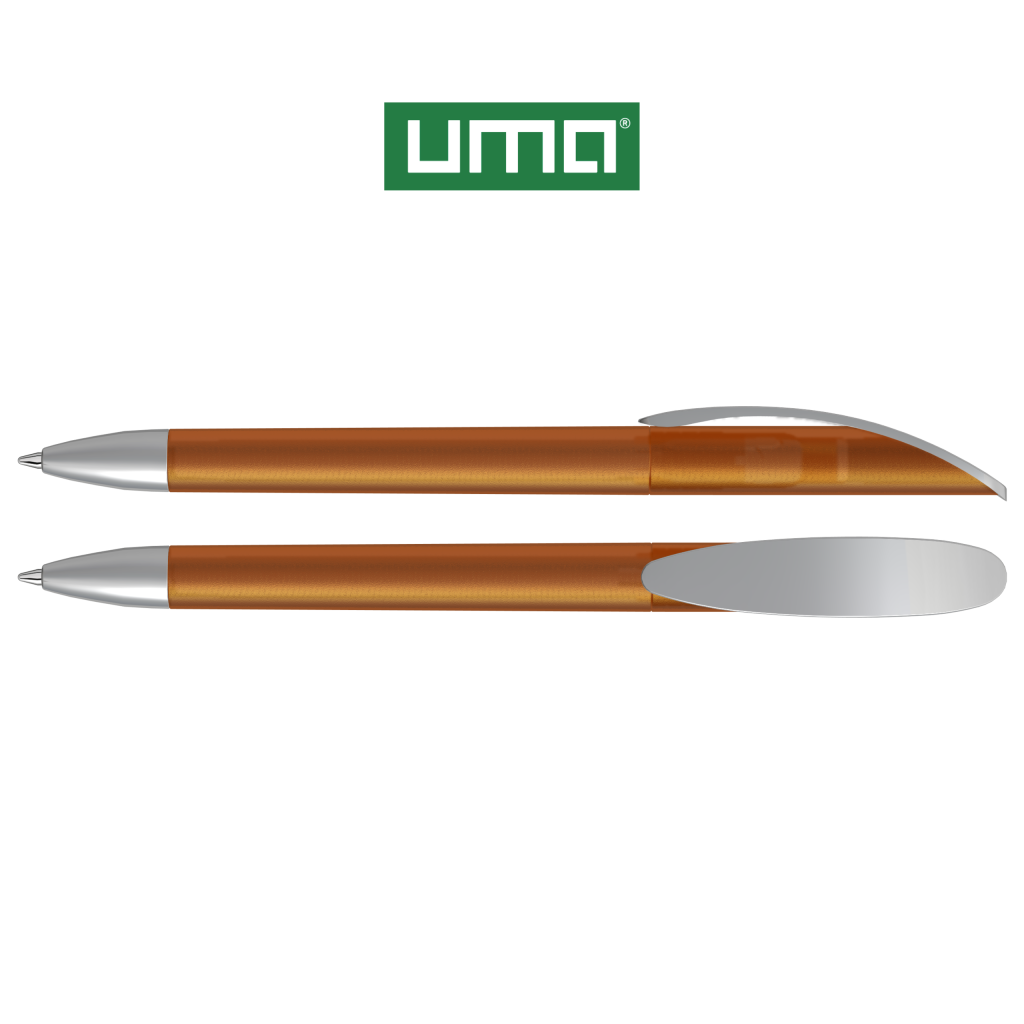 Twist ballpoint pen with transparent frosted or opaque matt housing, curved clip silver matt and heavy metal tip matt chromed.