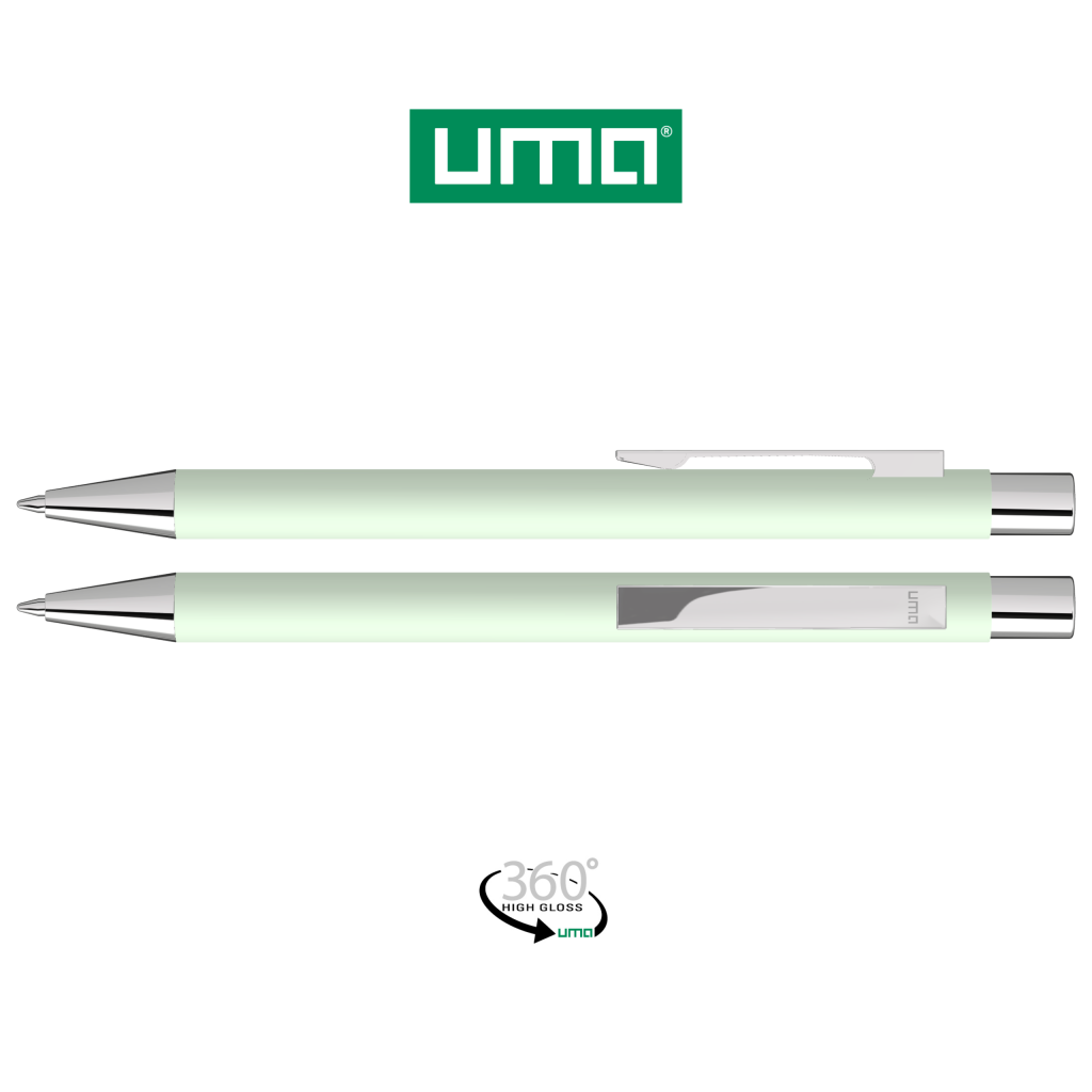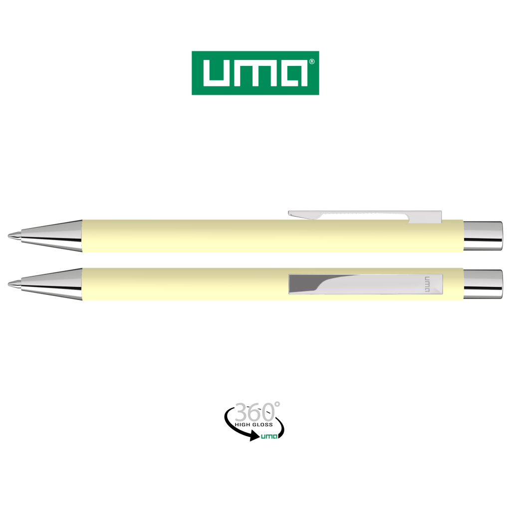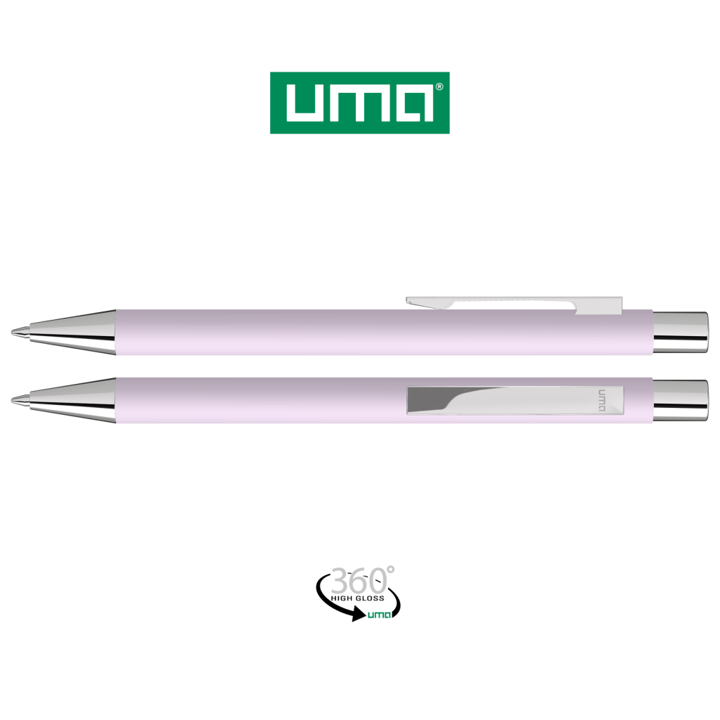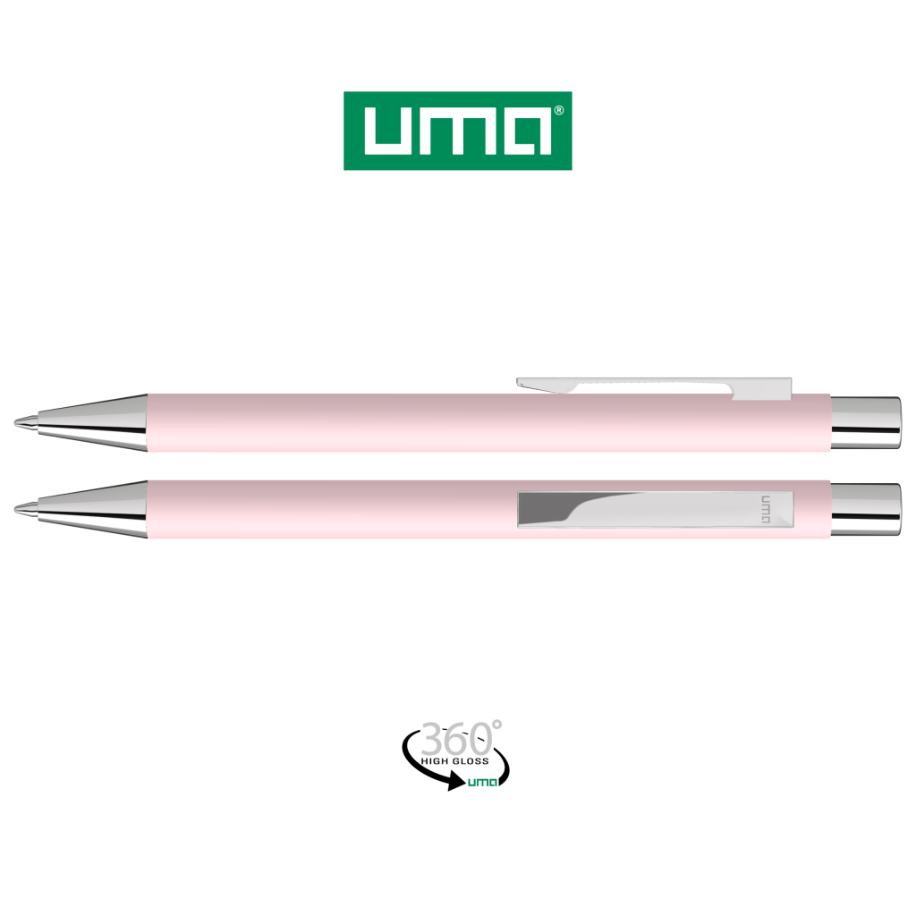Metal retractable ballpoint pen with softtouch housing. Metal clip, metal tip and push-button chrome plated.