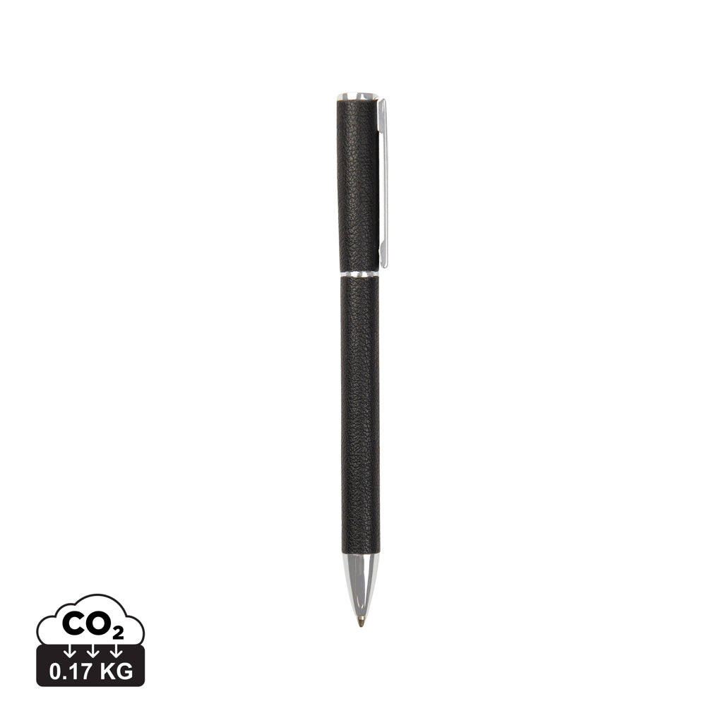 Et elegant skriveredskab med drejemekanisme og dokumentbaseret blåt blæk, der giver en skrivelængde på ca. 1200 meter og en skrivebredde på 1,0 mm. Fremstillet med en korpus af genanvendt aluminium, messingkomponenter og PU-materiale. Timo-serien tilbyder minimalistisk skrivebordstilbehør fremstillet af RCS-certificerede genanvendte materialer, der blander elegant design til en moderne arbejdspladsæstetik. Certificeret af RCS (Recycled Claim Standard), RSC-certificering garanterer, at hele forsyningskæden af genanvendte materialer er certificeret. Det samlede genanvendte indhold er baseret på den samlede produktvægt. Dette produkt indeholder 27 % RCS-certificeret genanvendt aluminium.