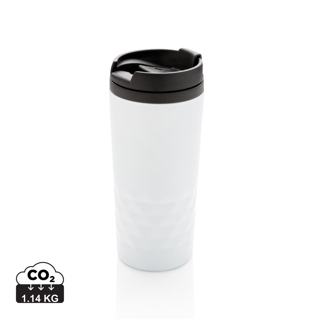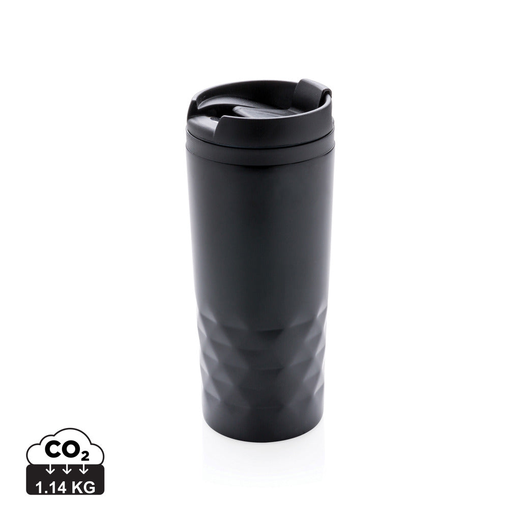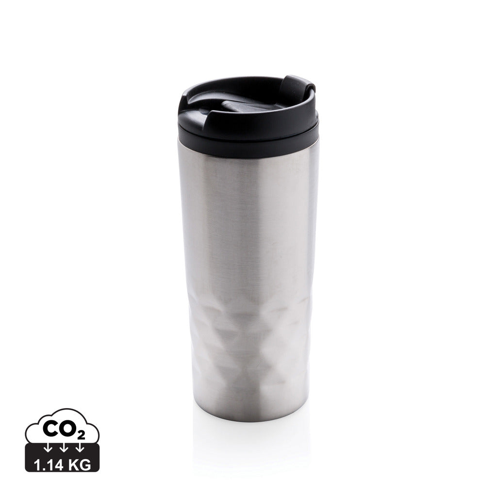 Smart rustfrit stål krus med geometriske detaljer. Indvending plastforing. Kun til håndopvask. Indeholder 300 ml.