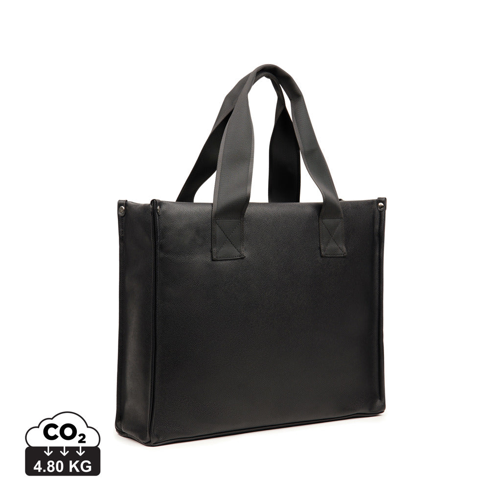 Giv din daglige pendling et løft med denne taske. Ydersiden og foret er fremstillet af genanvendt PU i overensstemmelse med RCS-standarder, hvilket viser vores engagement i ansvarlig sourcing. Med en behagelig skulderrem er denne taske perfekt til travle dage på farten. Den indeholder også en polstret mappe til bærbare computere for ekstra beskyttelse og organisering Certificeret af RCS (Recycled Claim Standard) garanterer RSC-certificering, at hele forsyningskæden for de genanvendte materialer er certificeret. Det samlede genanvendte indhold er baseret på den samlede produktvægt. Dette produkt indeholder 23% RCS-certificeret genanvendt polyester og 7% RCS-certificeret genanvendt PU.Passer til computere med en samlet størrelse på 17 tommer. Bemærk, at skærmens mål ikke er de samme som målene på hele computeren.