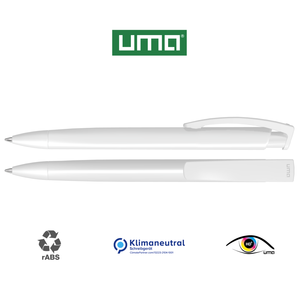 Retractable ballpoint pen with opaque matt triangular housing and clip made from recycled ABS plastic. The model is labelled with the recycling mark.