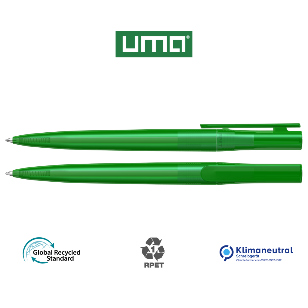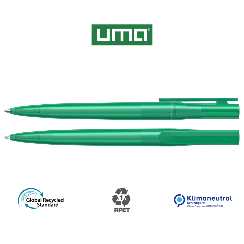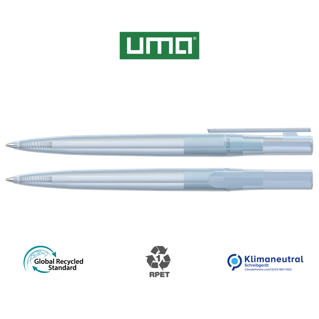 Twist ballpoint pen made from recycled PET material with transparent glossy housing.