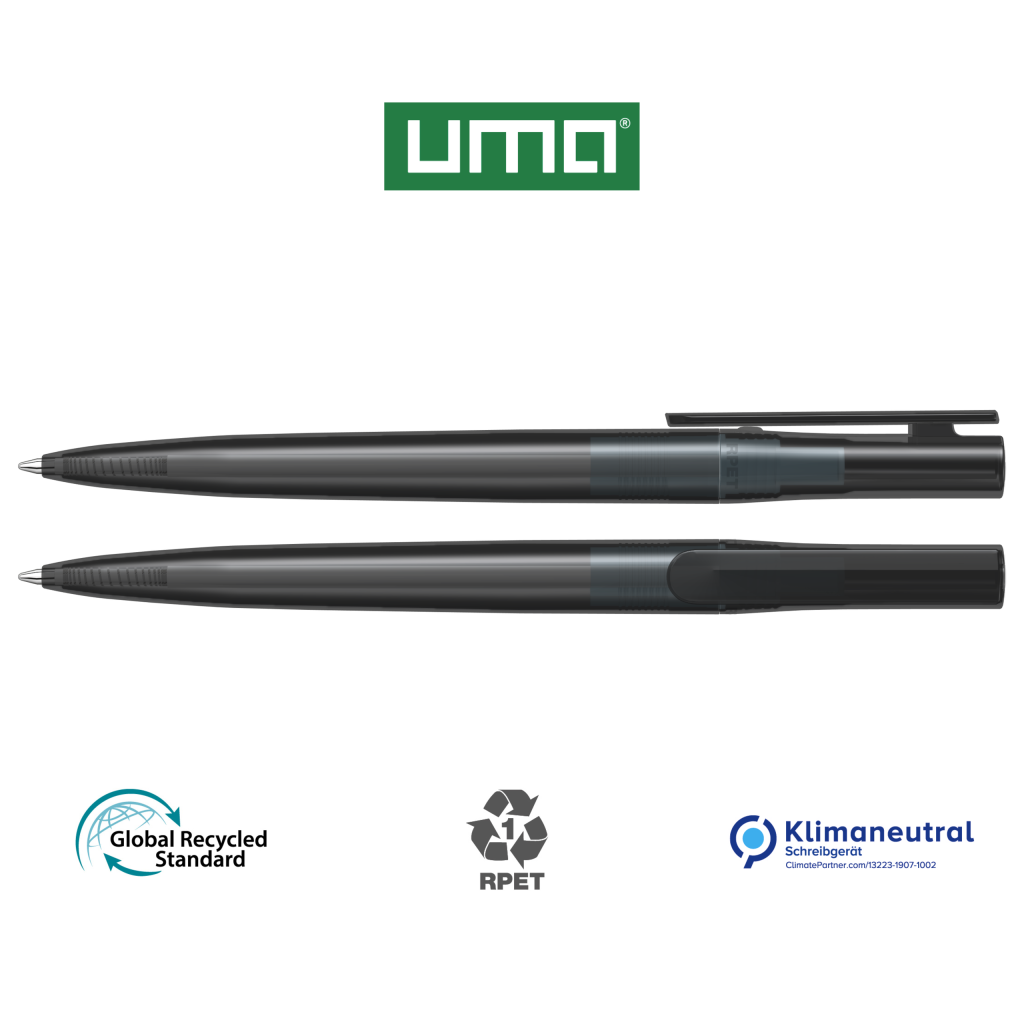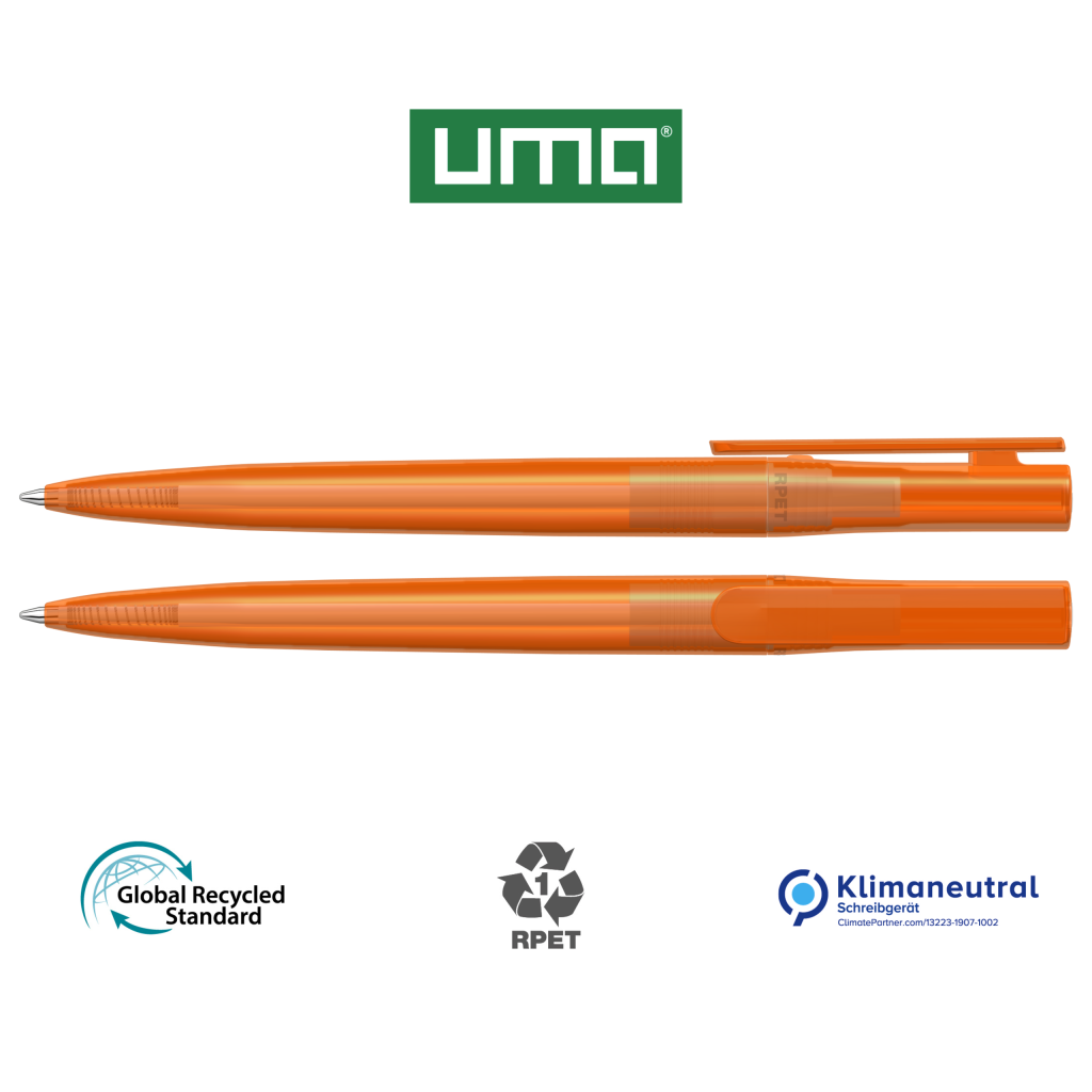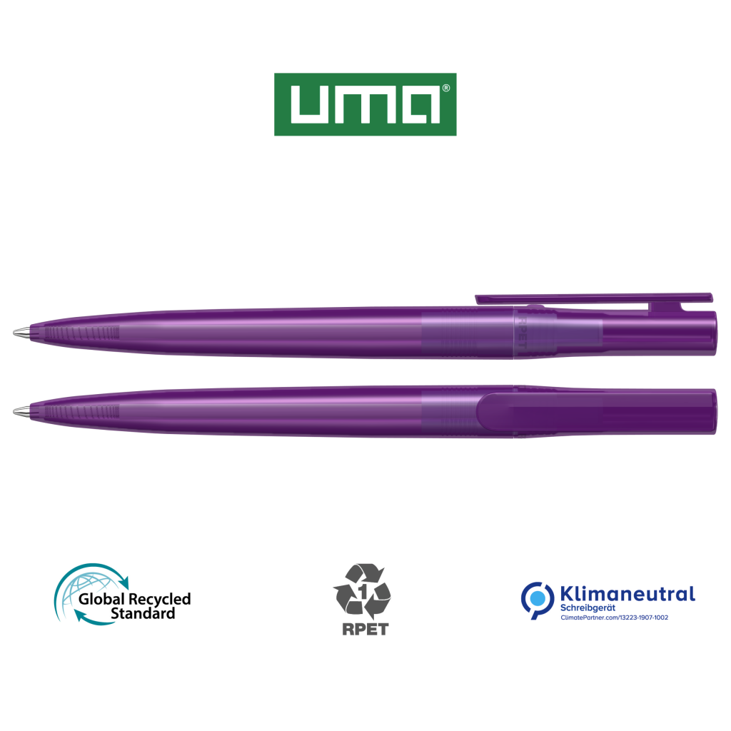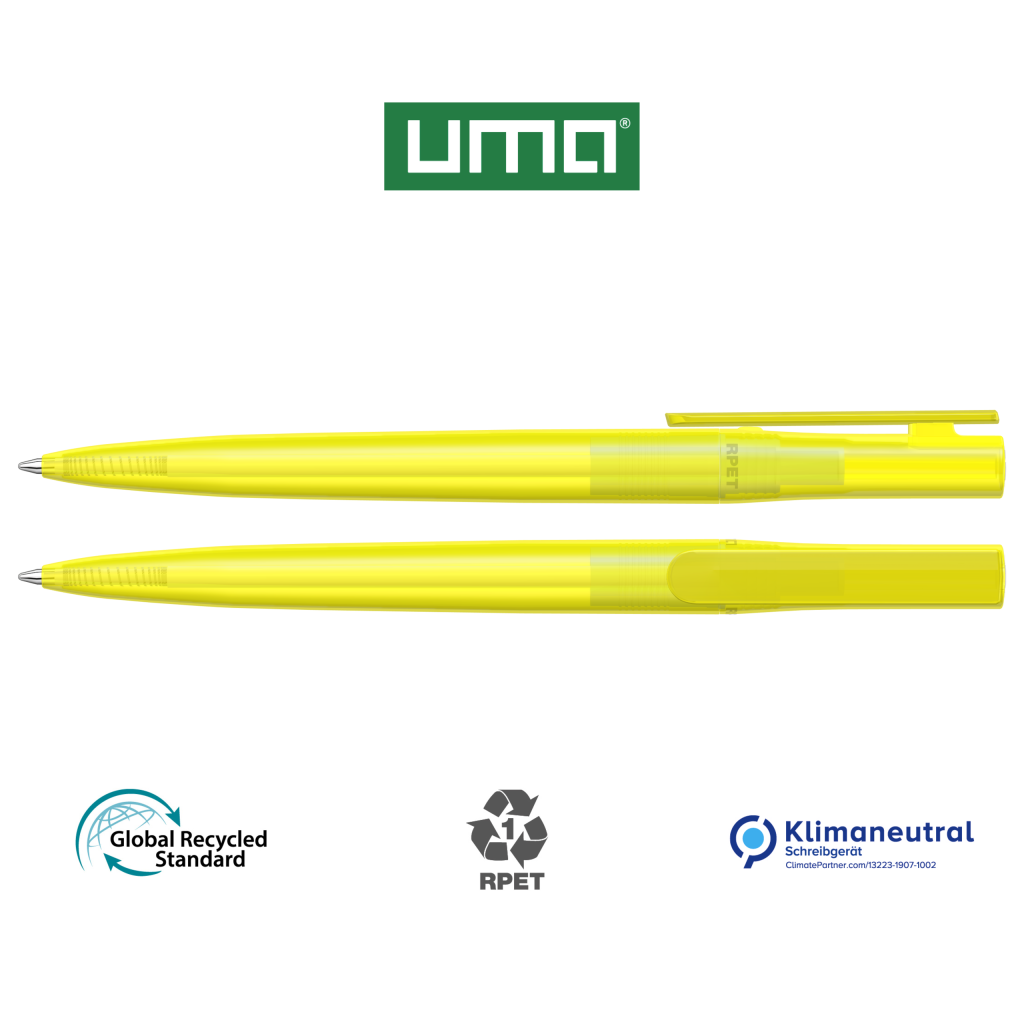 Twist ballpoint pen made from recycled PET material with transparent glossy housing.