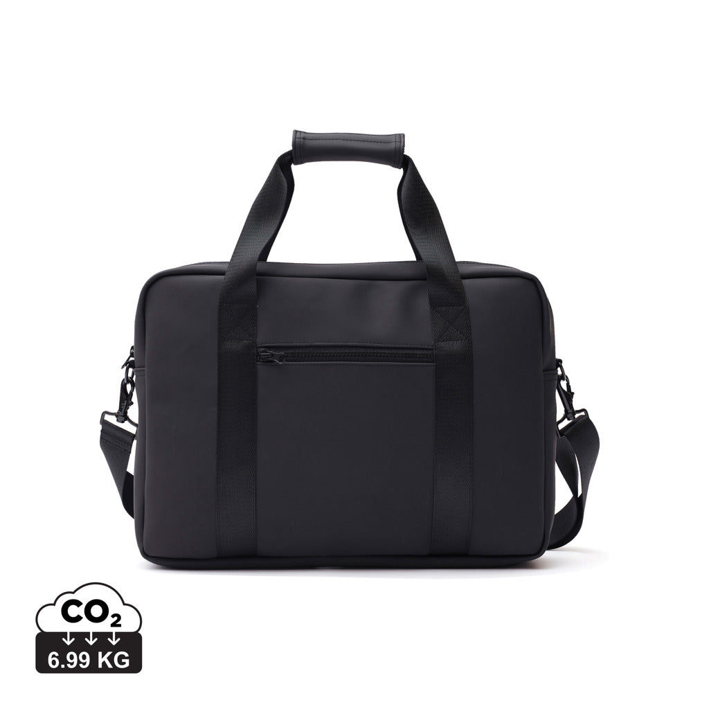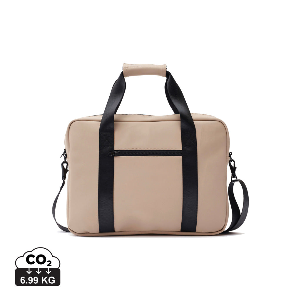 Computertaske med et moderne og flot design. Funktioner og form går op i en højere enhed. Udover den normale computerlomme har denne taske også plads til penne, dokumenter og andre ejendele. Tasken er produceret i et vandafvisende materiale, både med skulderstrop og bærehåndtag. Den har også et bånd på bagsiden til at fastgøre den til din rullekuffert, når du er ude at rejse.Passer til computere med en samlet størrelse på 17 tommer. Bemærk, at skærmens mål ikke er de samme som målene på hele computeren.