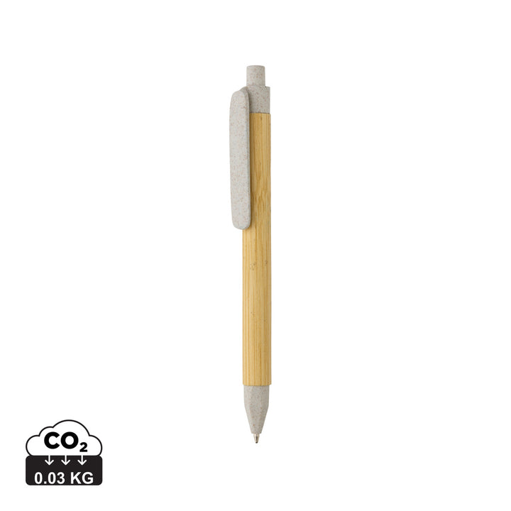 Denne smukke kuglepen har en genbrugspapirkrop, men ligner ægte bambus! Clipsen er lavet af hvedekorn. Inklusive ca. 1000m skrivelængde Tysk Dokumental® blå refill med TC-kugle til ultra glat skrivning.