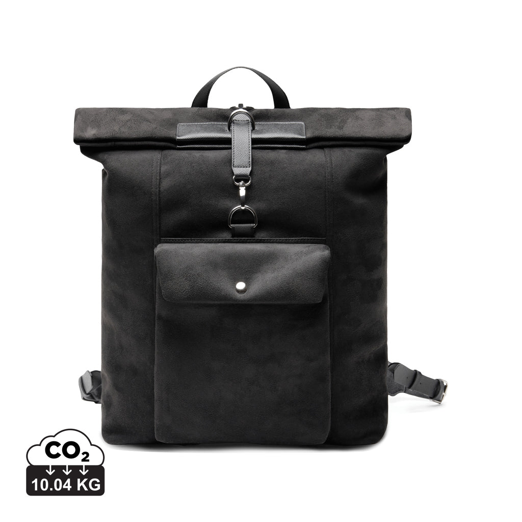 En elegant rygsæk, der passer til enhver lejlighed. Rygsækken er lavet af genanvendt kunstlæder og PU detaljer, der tilføjer stil, når du er på farten. En spænde og magnetisk lukning sikrer en smidig og sikker lukning. Ydersiden har også en praktisk udvendig lomme og en forstærket bund. Den brede åbning giver nem adgang til dine ejendele, med et indvendigt rum til en laptop og en mindre lynlåslomme til organiseret opbevaring. Certificeret af RCS (Recycled Claim Standard), som sikrer, at hele forsyningskæden for genanvendte materialer er certificeret. Den samlede procentdel af genanvendt materiale er baseret på produktets samlede vægt. Dette produkt indeholder 44% RCS certificeret genanvendt polyester og 5% RCS certificeret genanvendt PU.