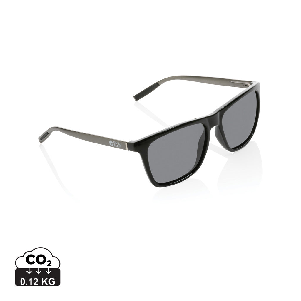Luksus polariserede solbriller lavet med RCS-certificeret genanvendt pc-ramme og aluminiumstænger. Samlet genbrugsindhold: 37% baseret på samlet artikelvægt. RCS-certificering sikrer en fuldstændig certificeret forsyningskæde af de genanvendte materialer. Herunder GRS-certificeret genanvendt RPET-etui til opbevaring af brillen. Linserne er polariserede, hvilket eliminerer reflekterende sollys, hvilket gør den ideel til at køre bil eller under andre solrige sommer- eller vinteraktiviteter udendørs. I overensstemmelse med EN ISO 12312-1, UV 400 og CAT 3. Pakket i en FSC® gaveemballage.