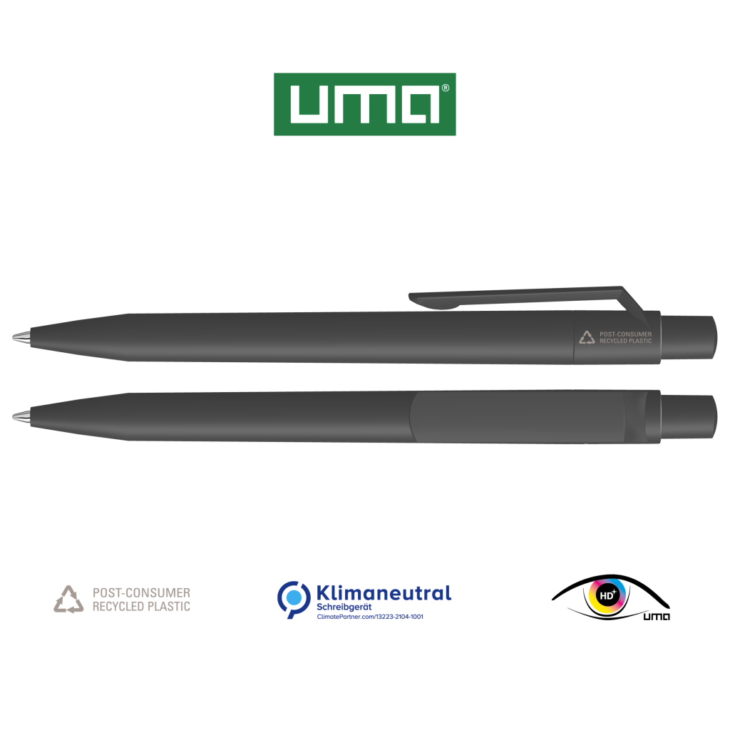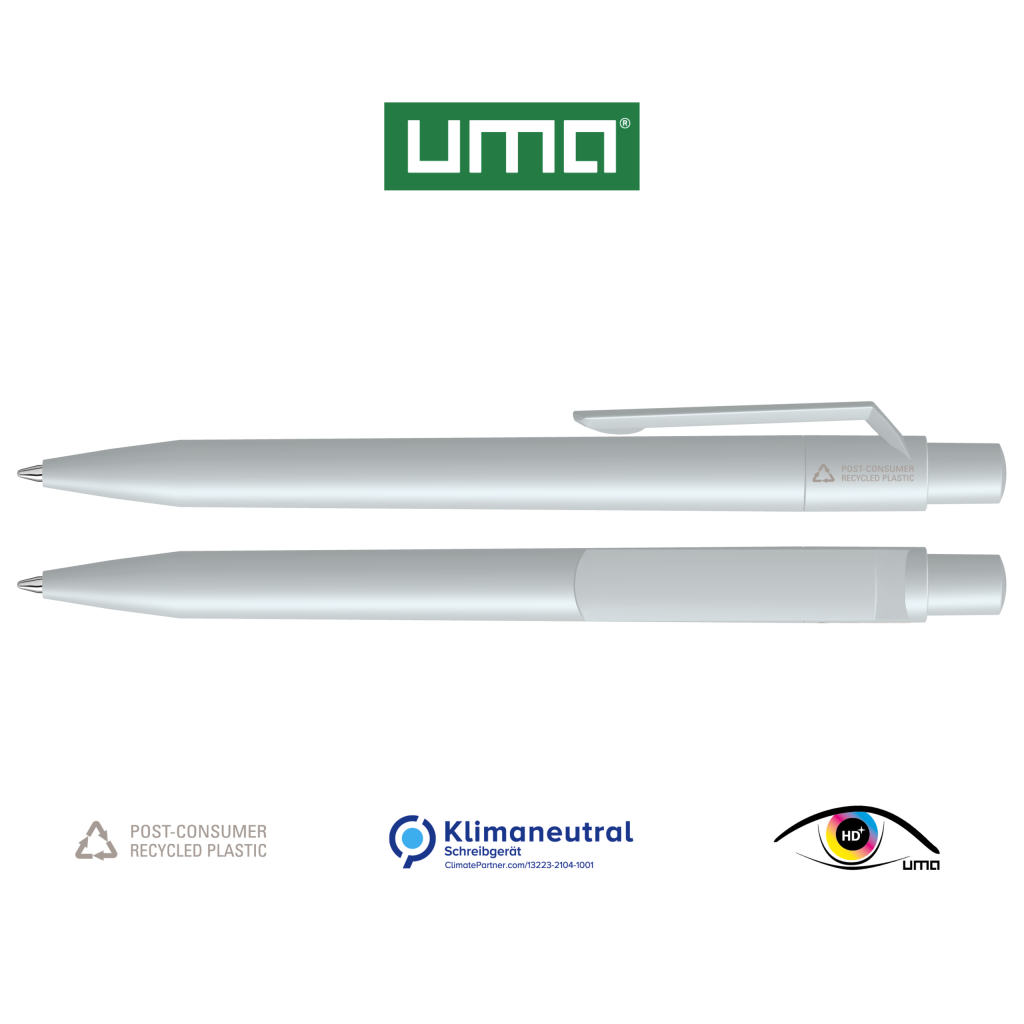 Retractable ballpoint pen with opaque matt housing, clip, push-button and plug made from 100% recycled post-consumer plastic.