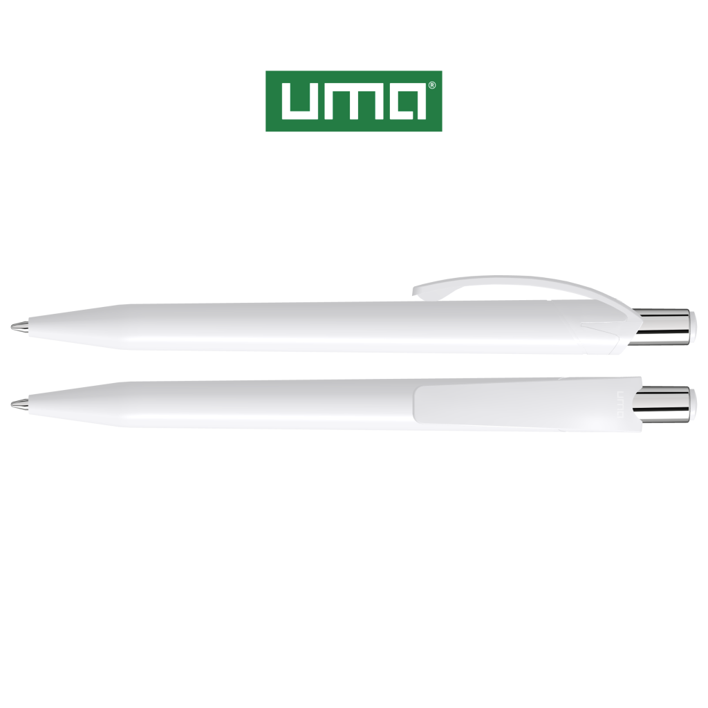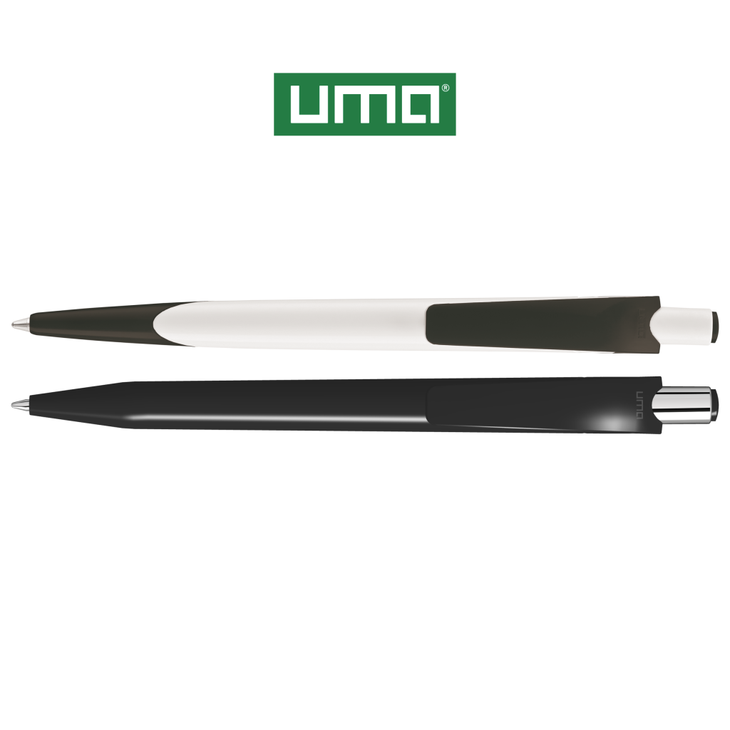 Retractable ballpoint pen with opaque glossy housing and plug in black or white. Push-button silver glossy.