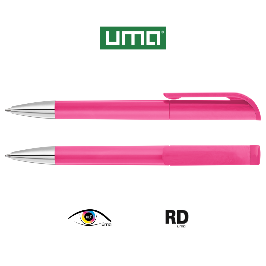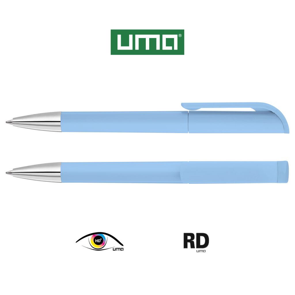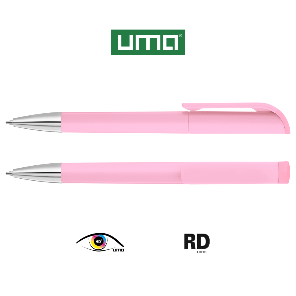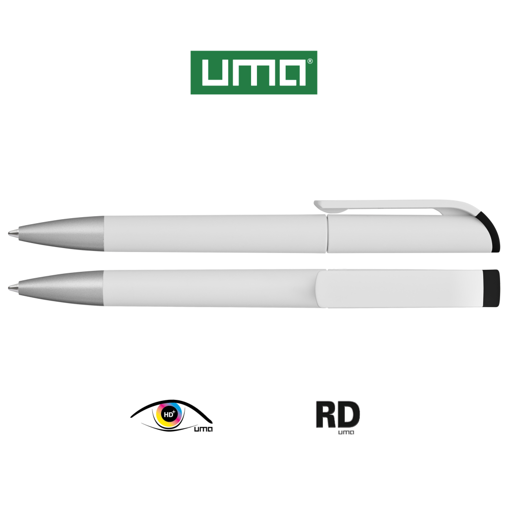 Twist ballpoint pen with opaque glossy housing in white, coloured plug and tip chrome plated.