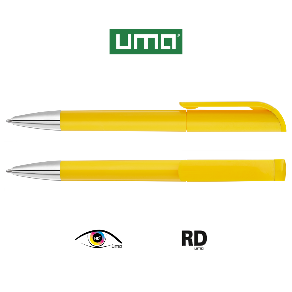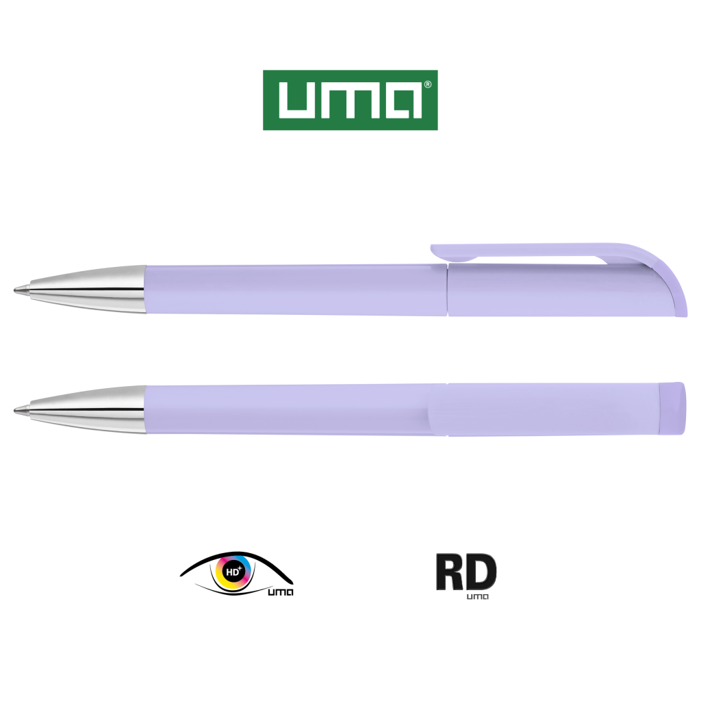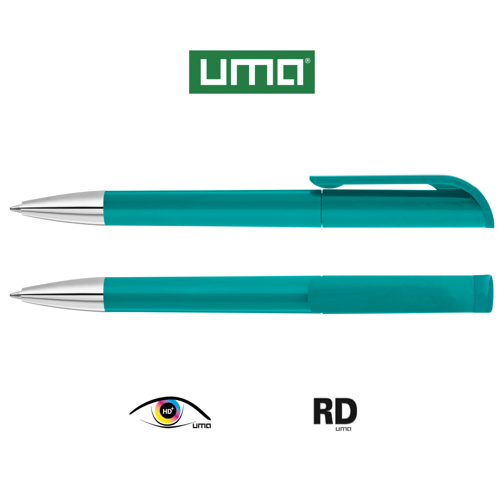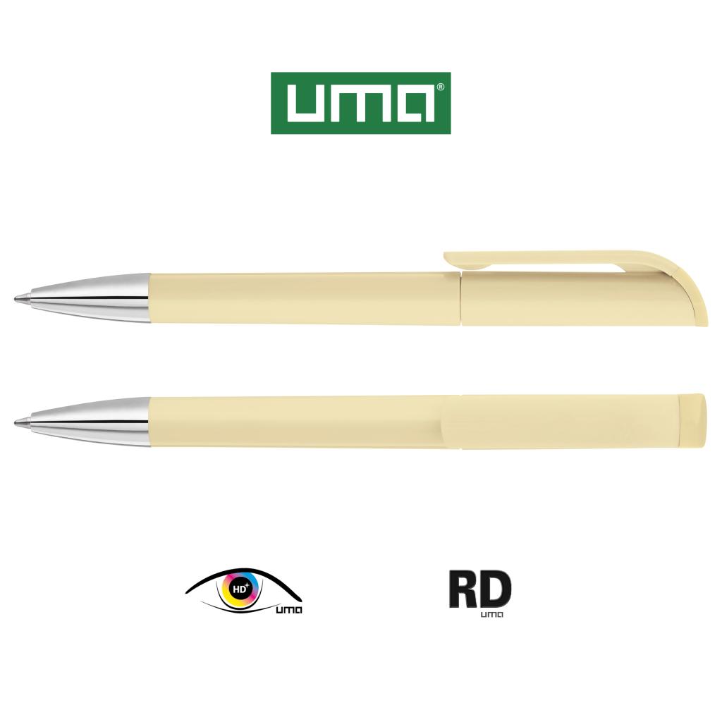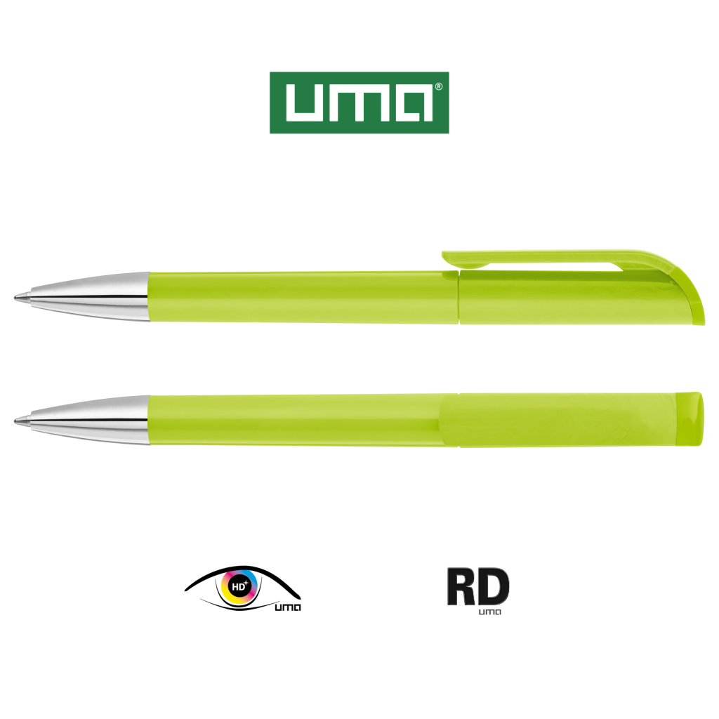 Twist ballpoint pen with opaque glossy housing in white, coloured plug and tip chrome plated.