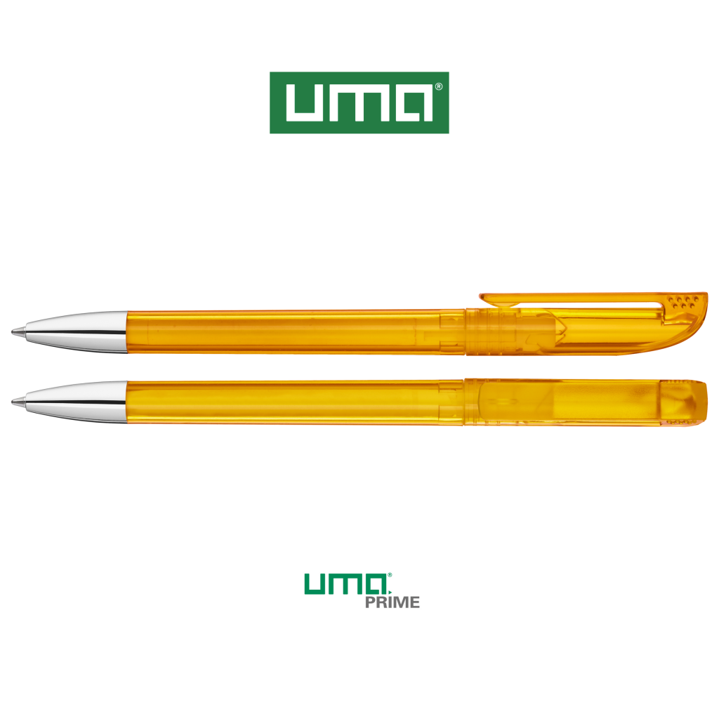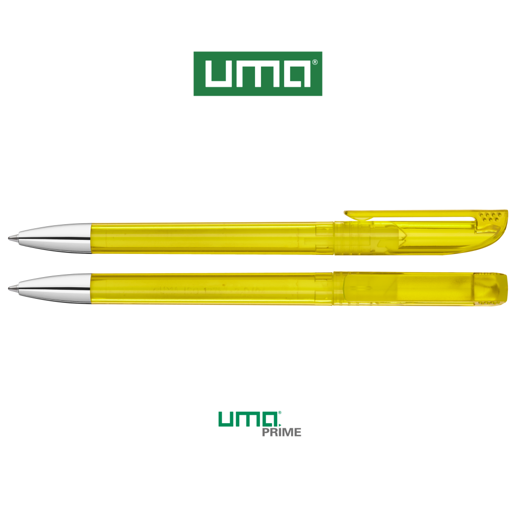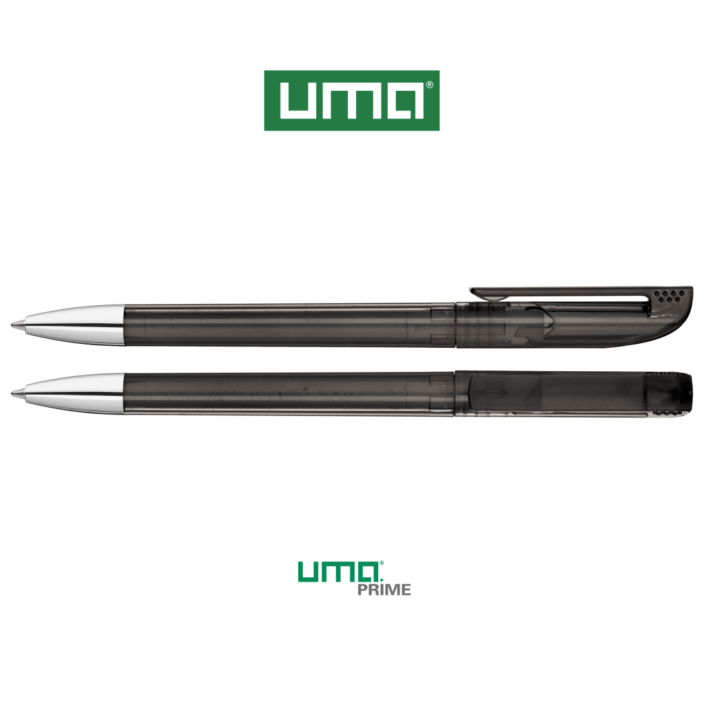 Twist ballpoint pen with transparent glossy housing, matt clip surface and tip chrome plated.