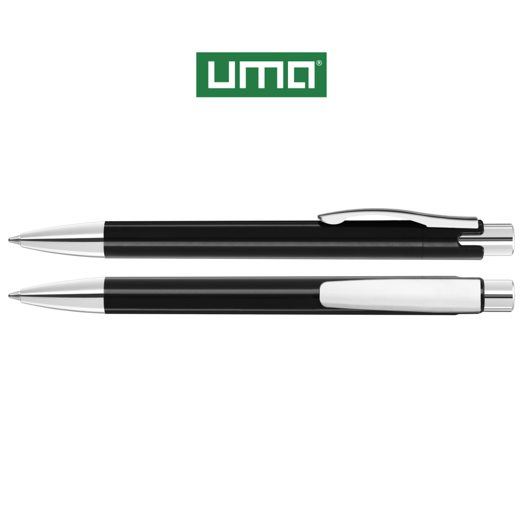 Retractable ballpoint pen with opaque glossy housing, heavy metal tip, metal push-button and metal clip chrome plated.