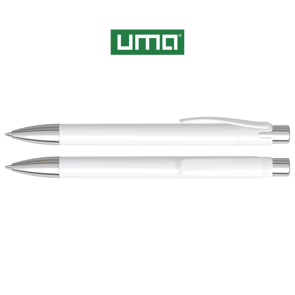 Retractable ballpoint pen with opaque glossy housing, heavy metal tip and metal push-button chrome plated.