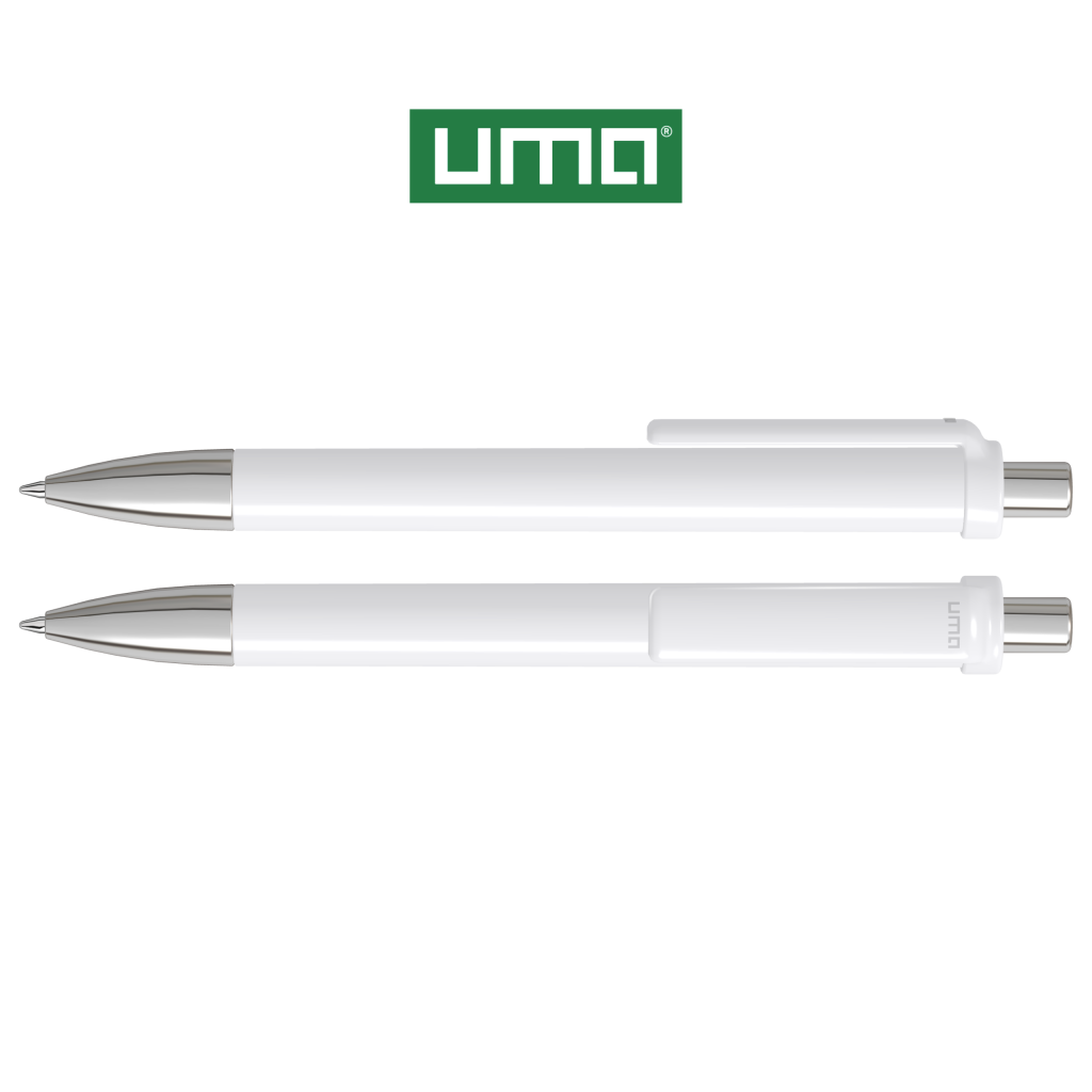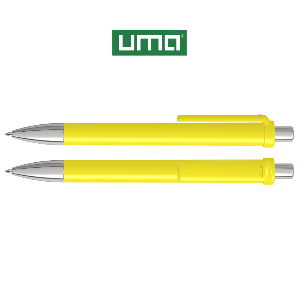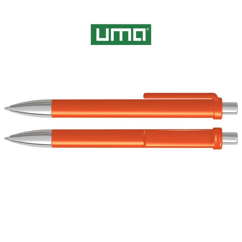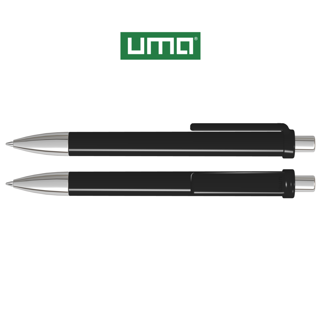 Retractable ballpoint pen with opaque glossy housing and clip, metal tip and metal push-button chrome plated.