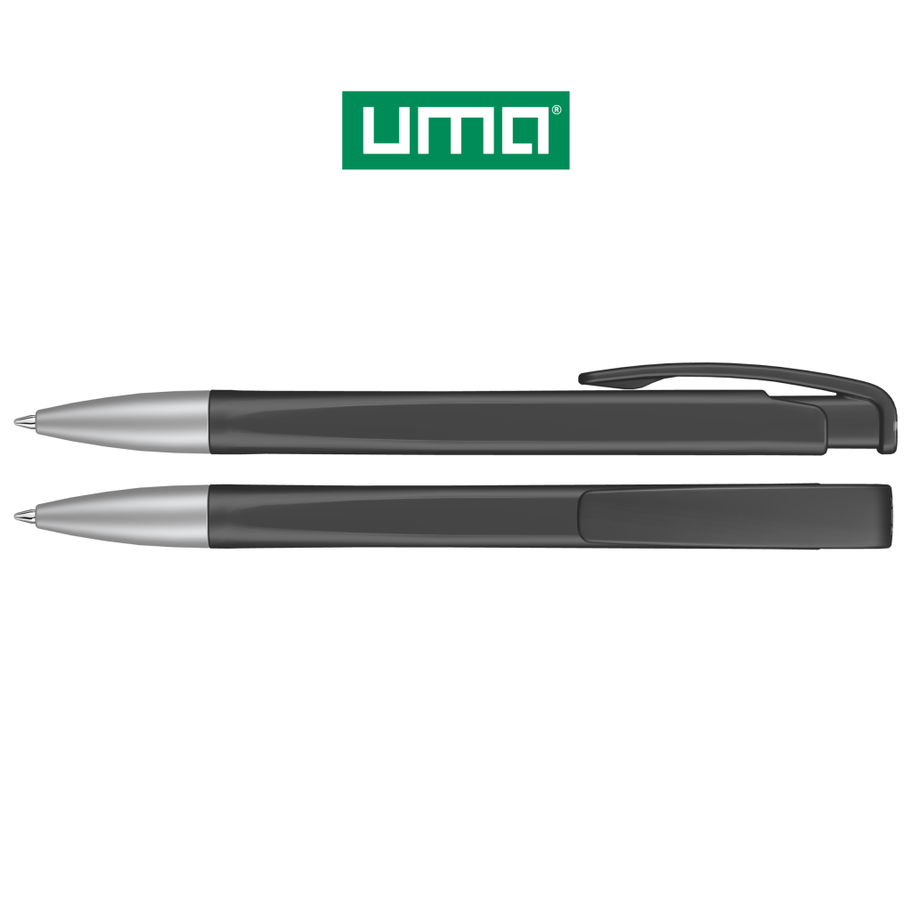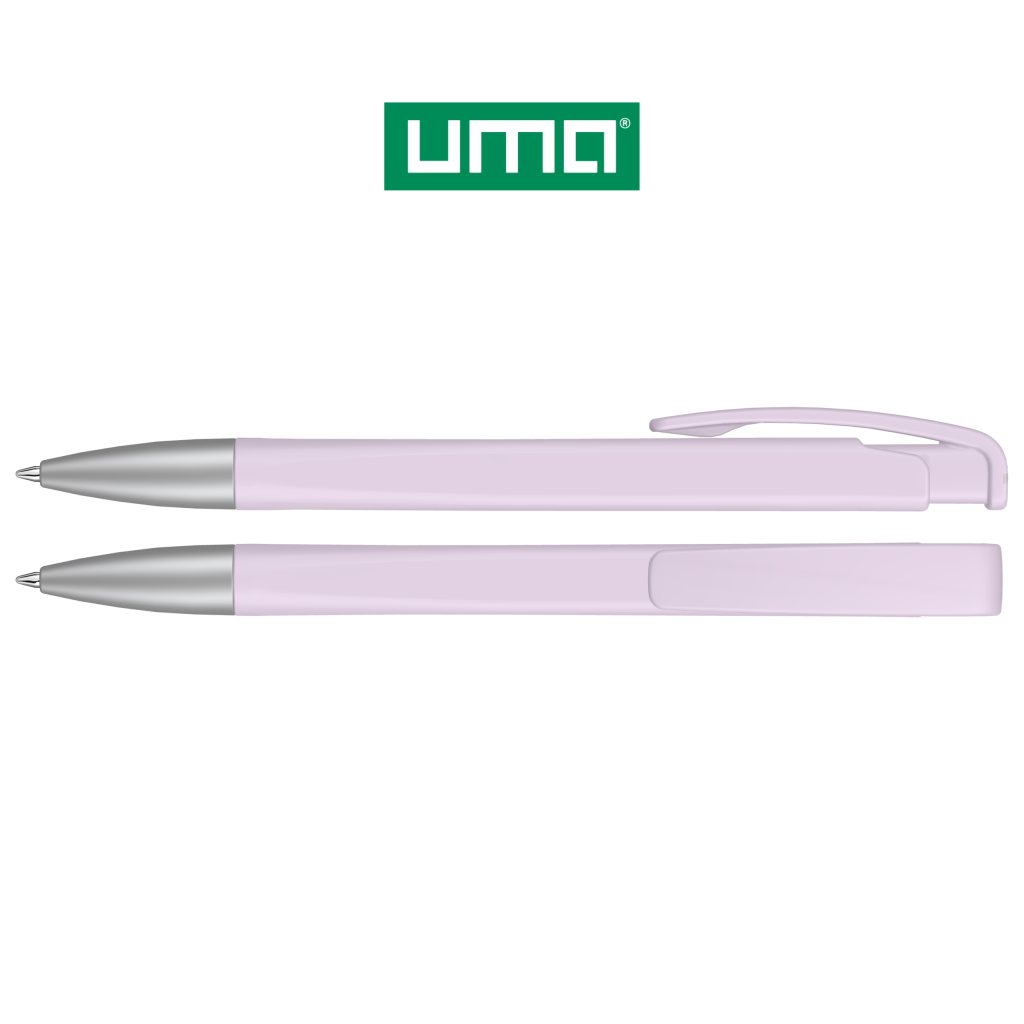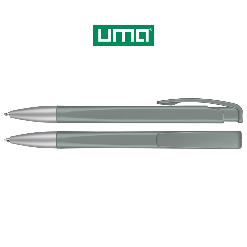 Retractable ballpoint pen with geometric changes in the barrel, opaque matt housing and metal tip matt chrome plated.