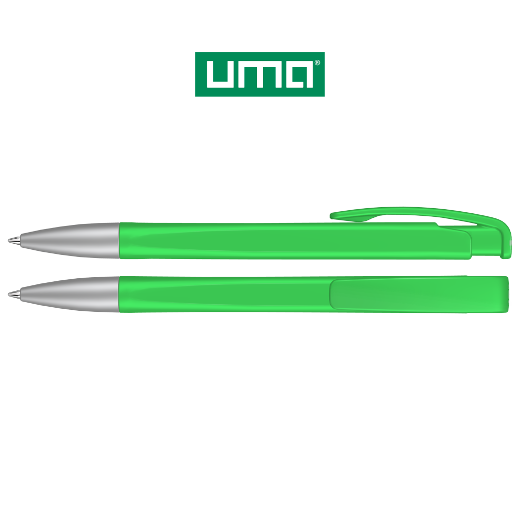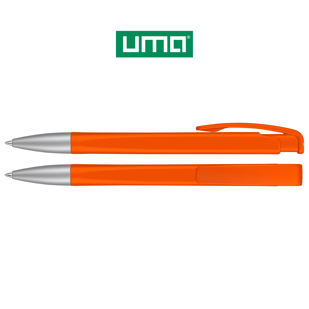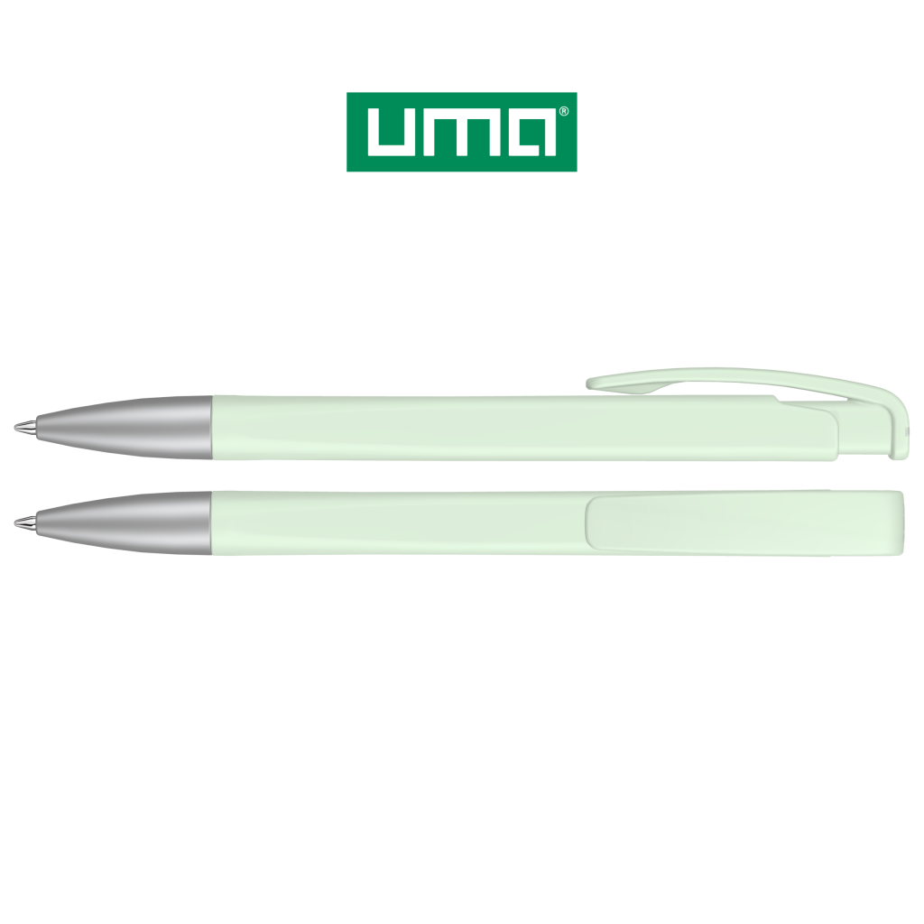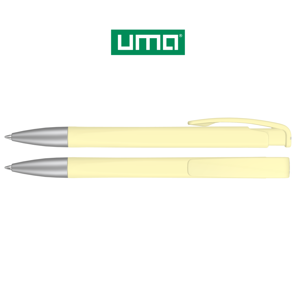 Retractable ballpoint pen with geometric changes in the barrel, opaque matt housing and metal tip matt chrome plated.