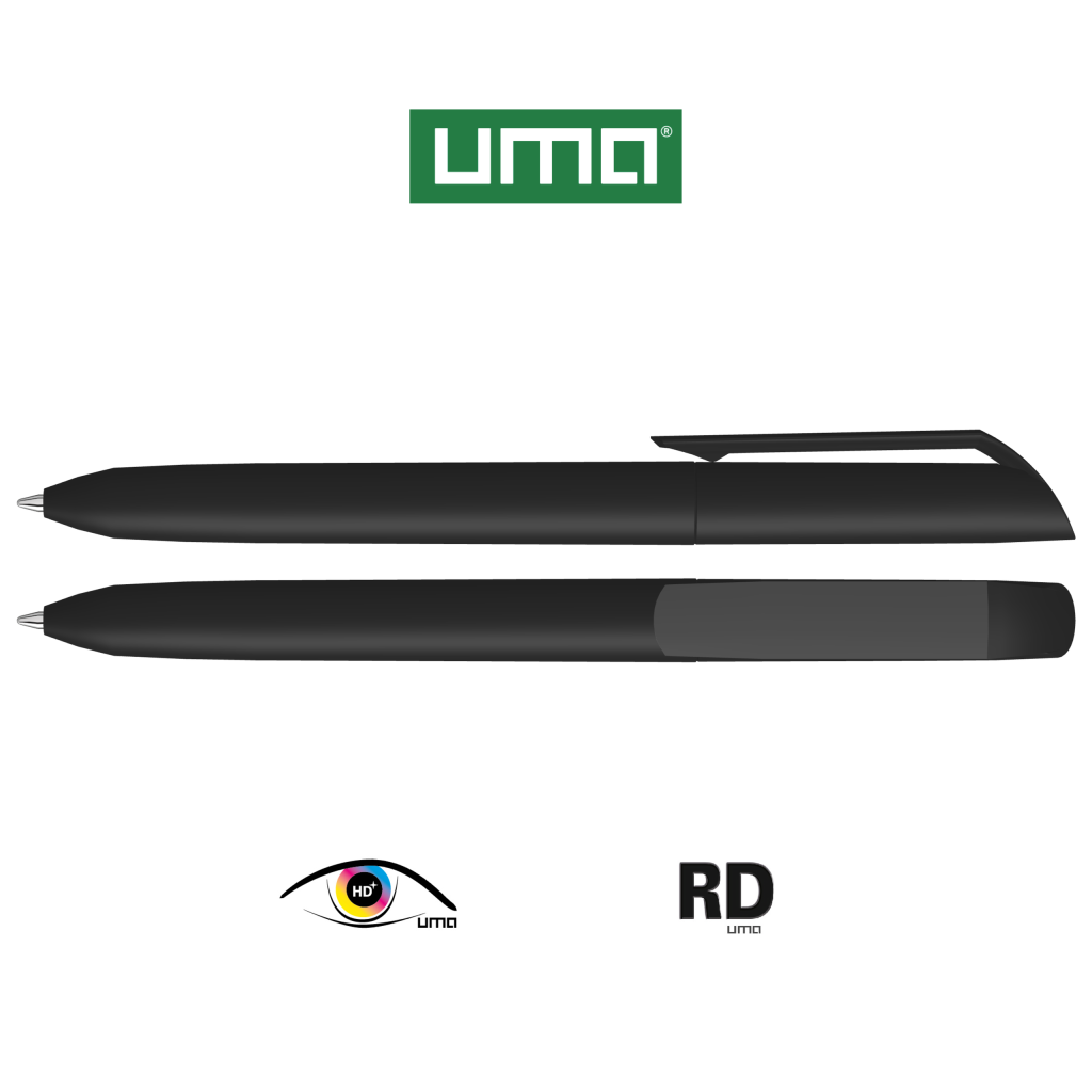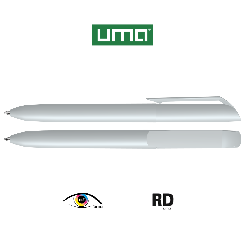 Twist ballpoint pen with opaque matt housing and clip.