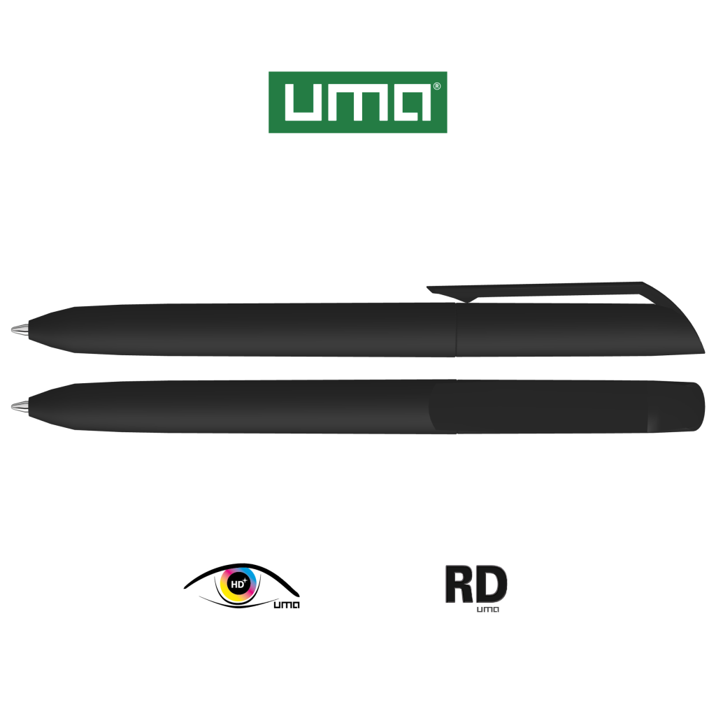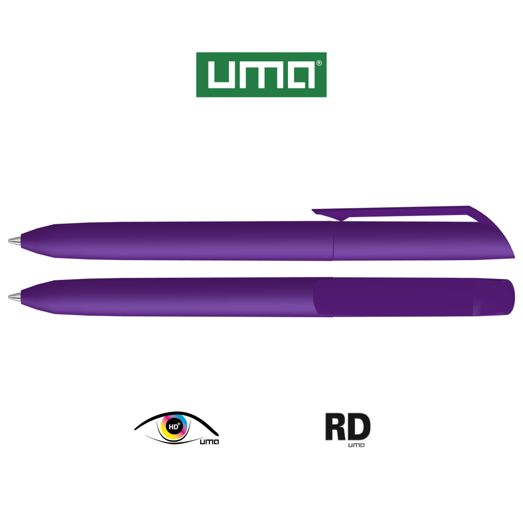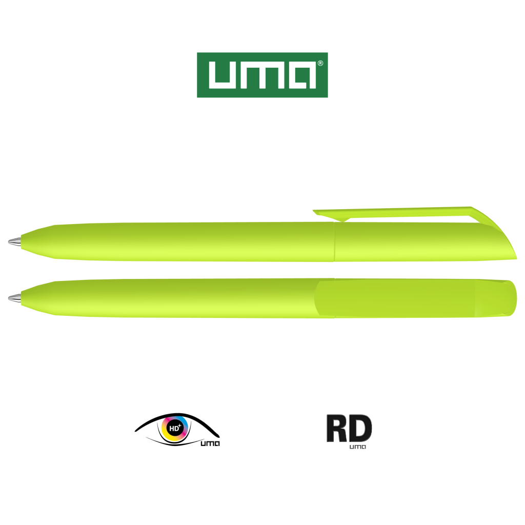 Twist ballpoint pen with softtouch housing and opaque glossy clip.