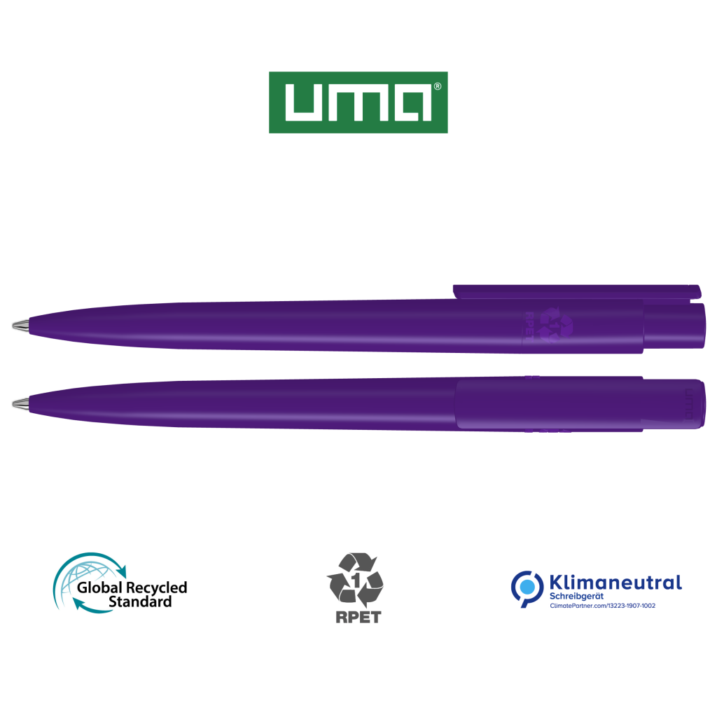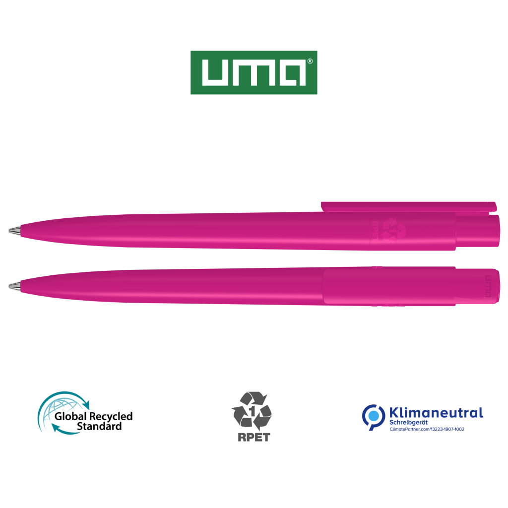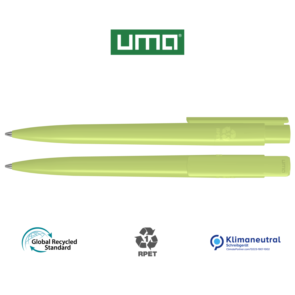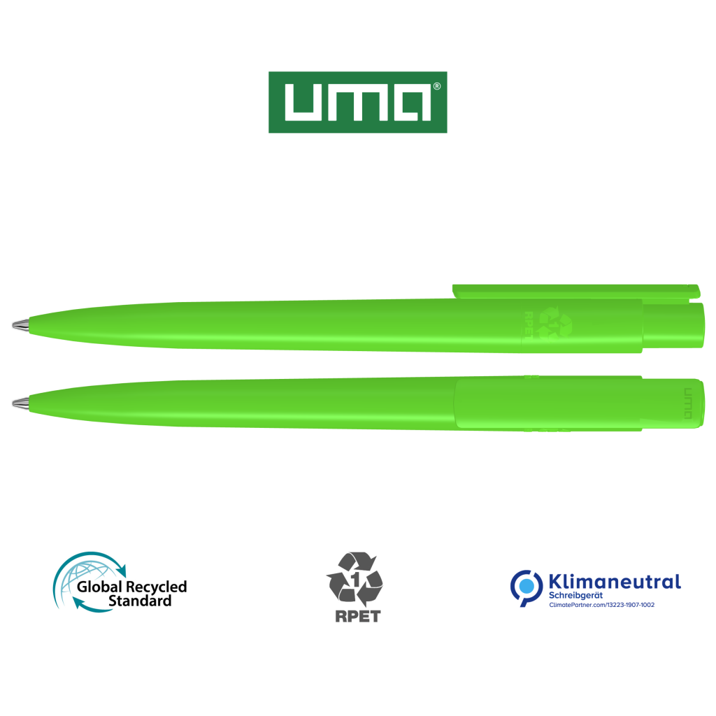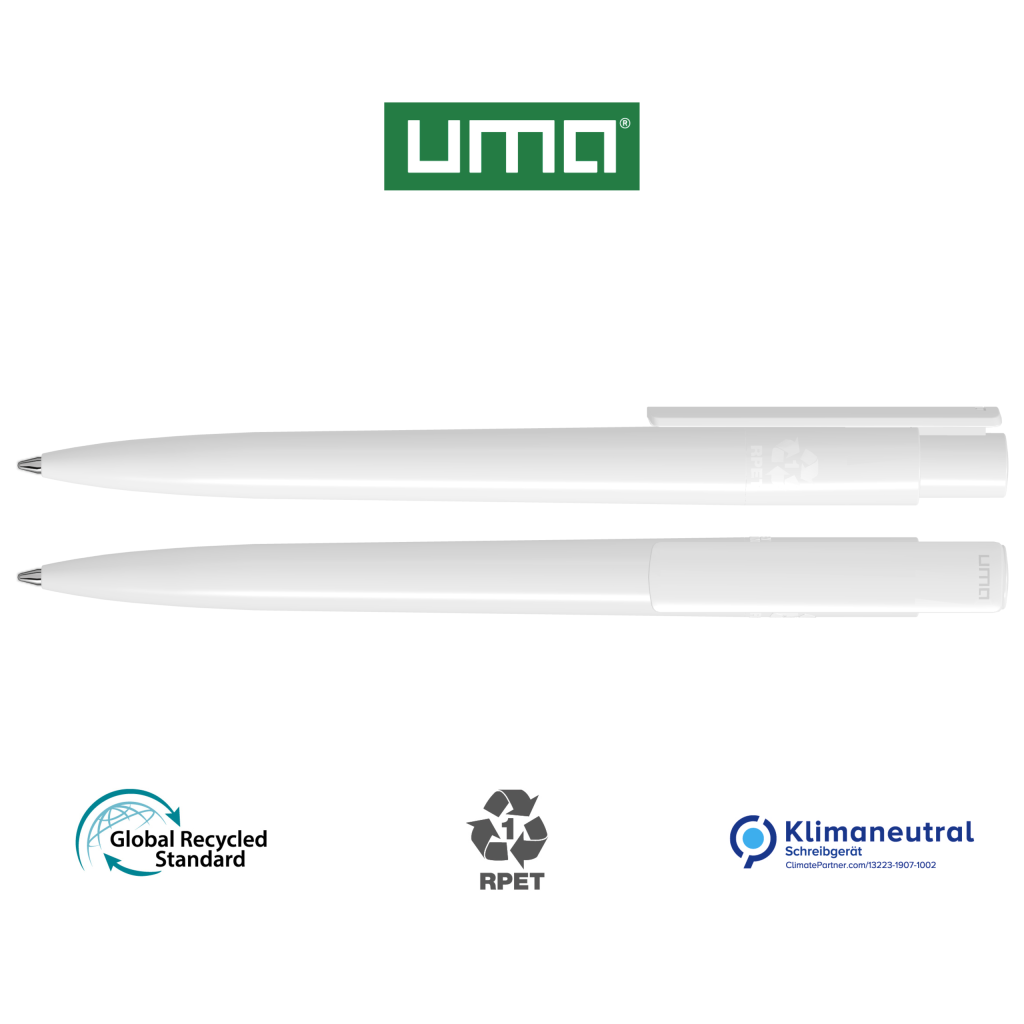 Retractable ballpoint pen made from recycled PET material with opaque glossy housing and clip.