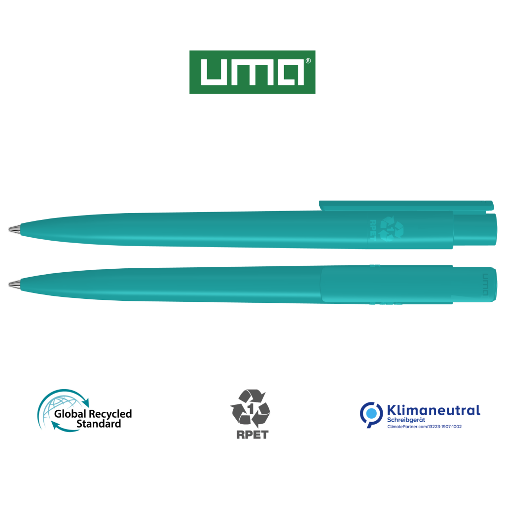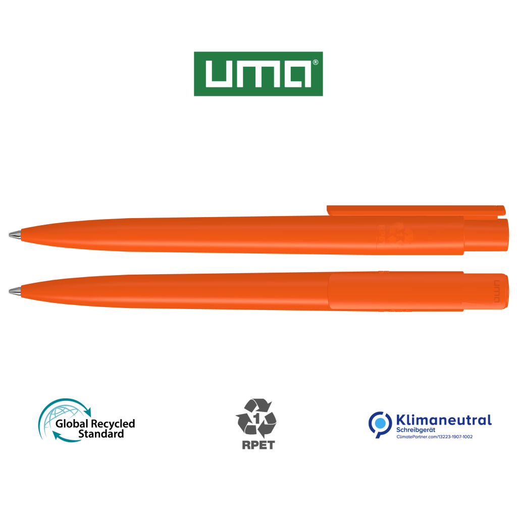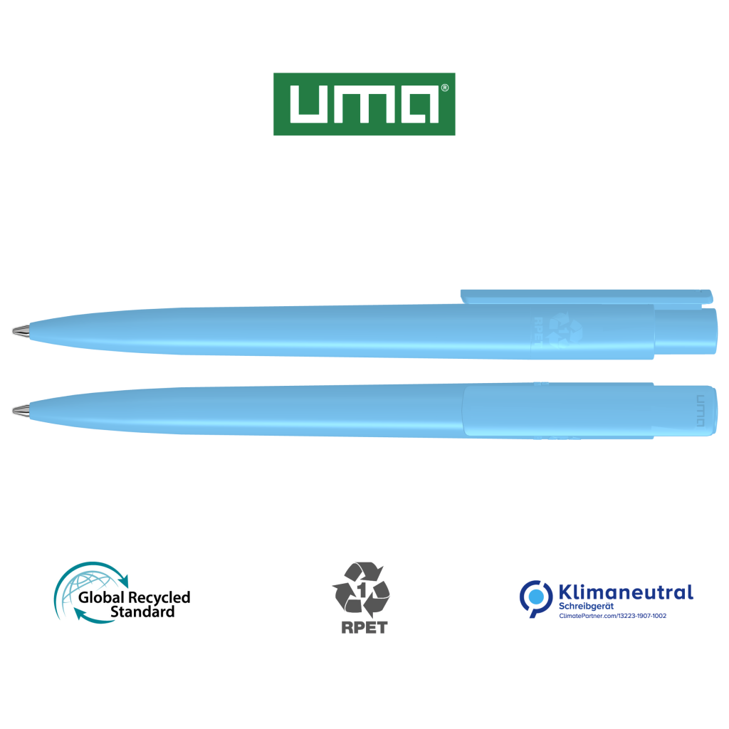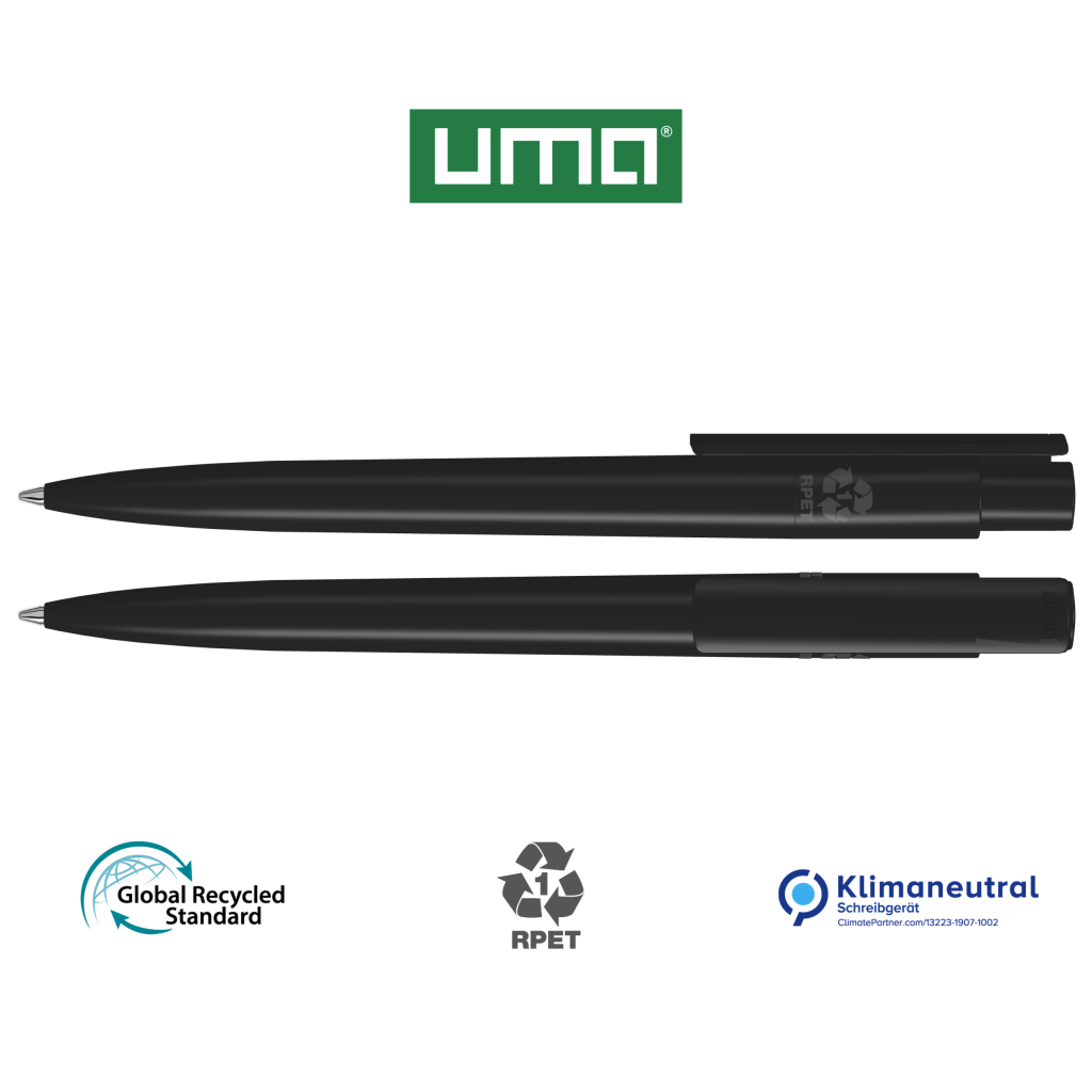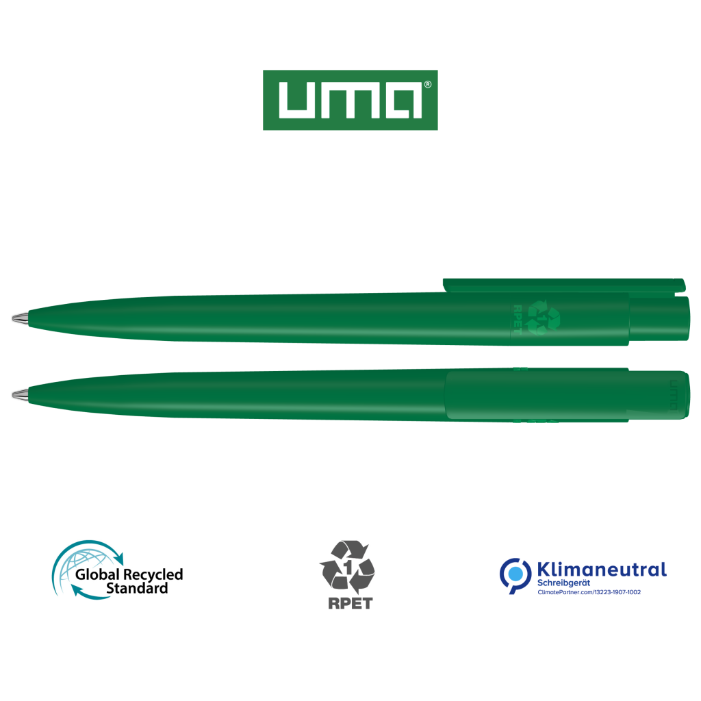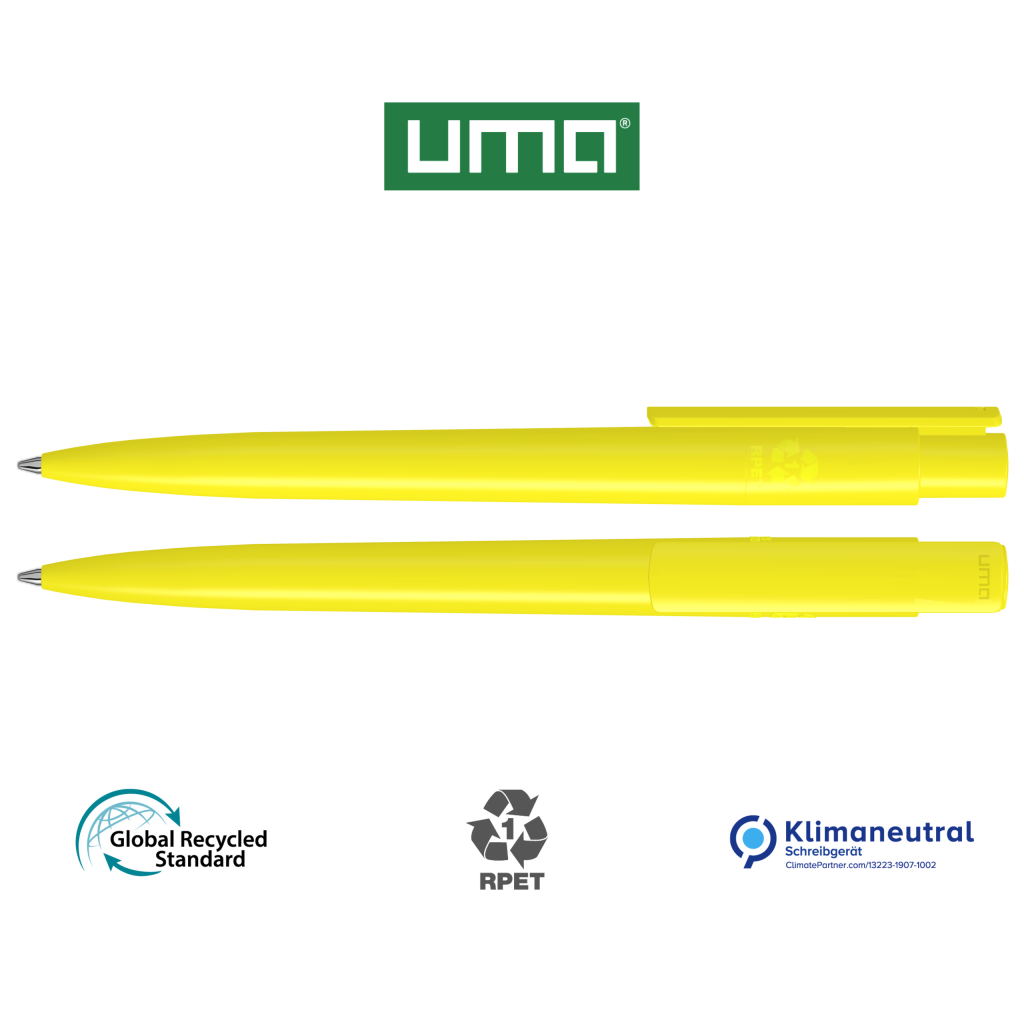 Retractable ballpoint pen made from recycled PET material with opaque glossy housing and clip.