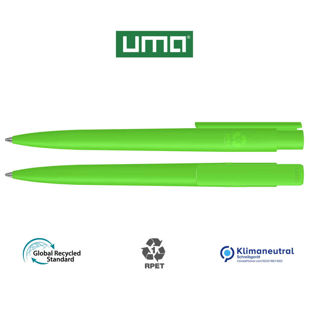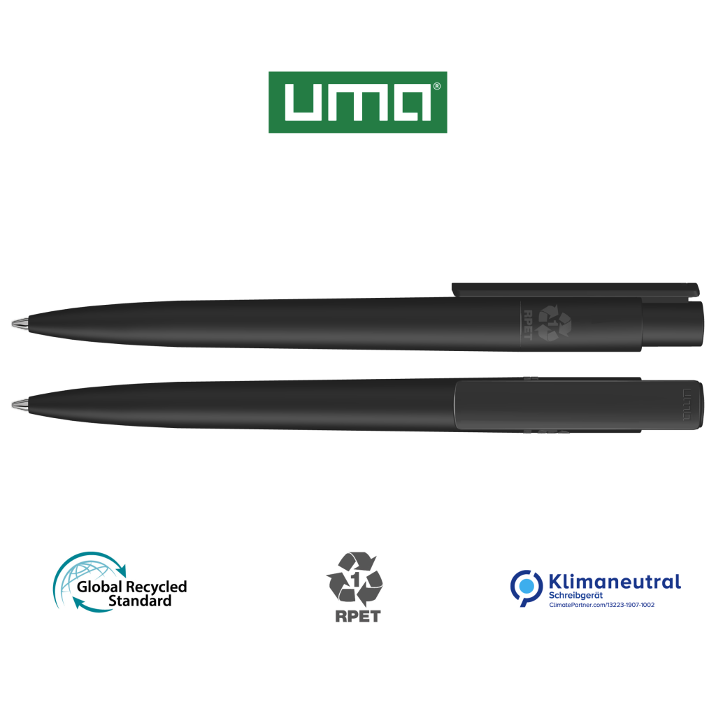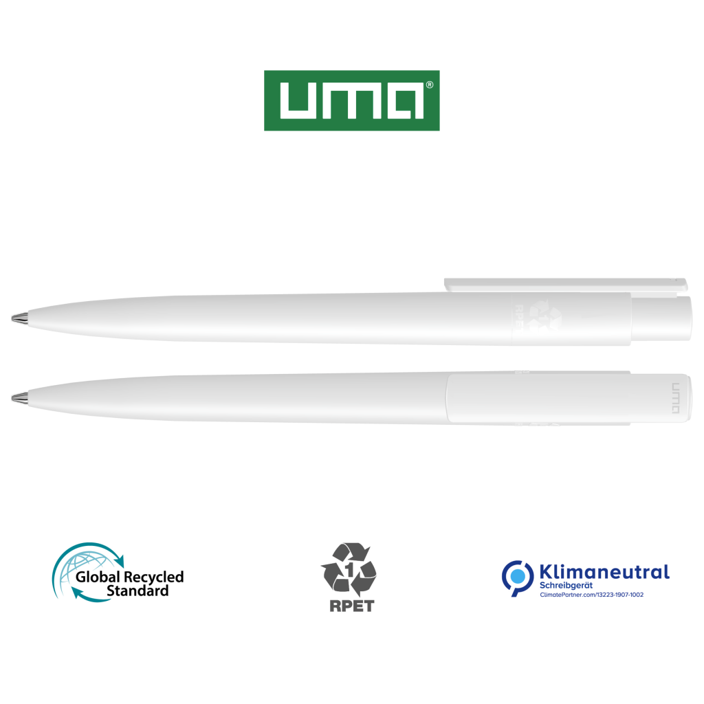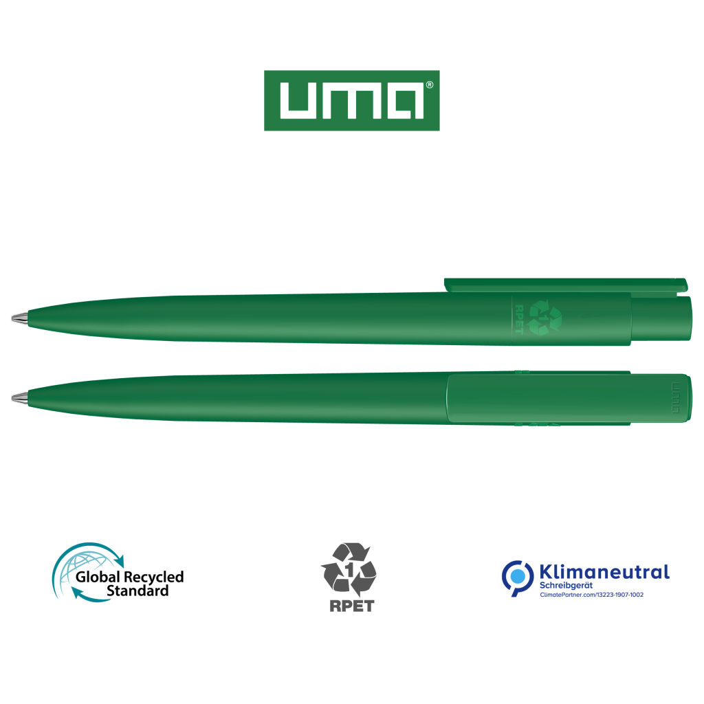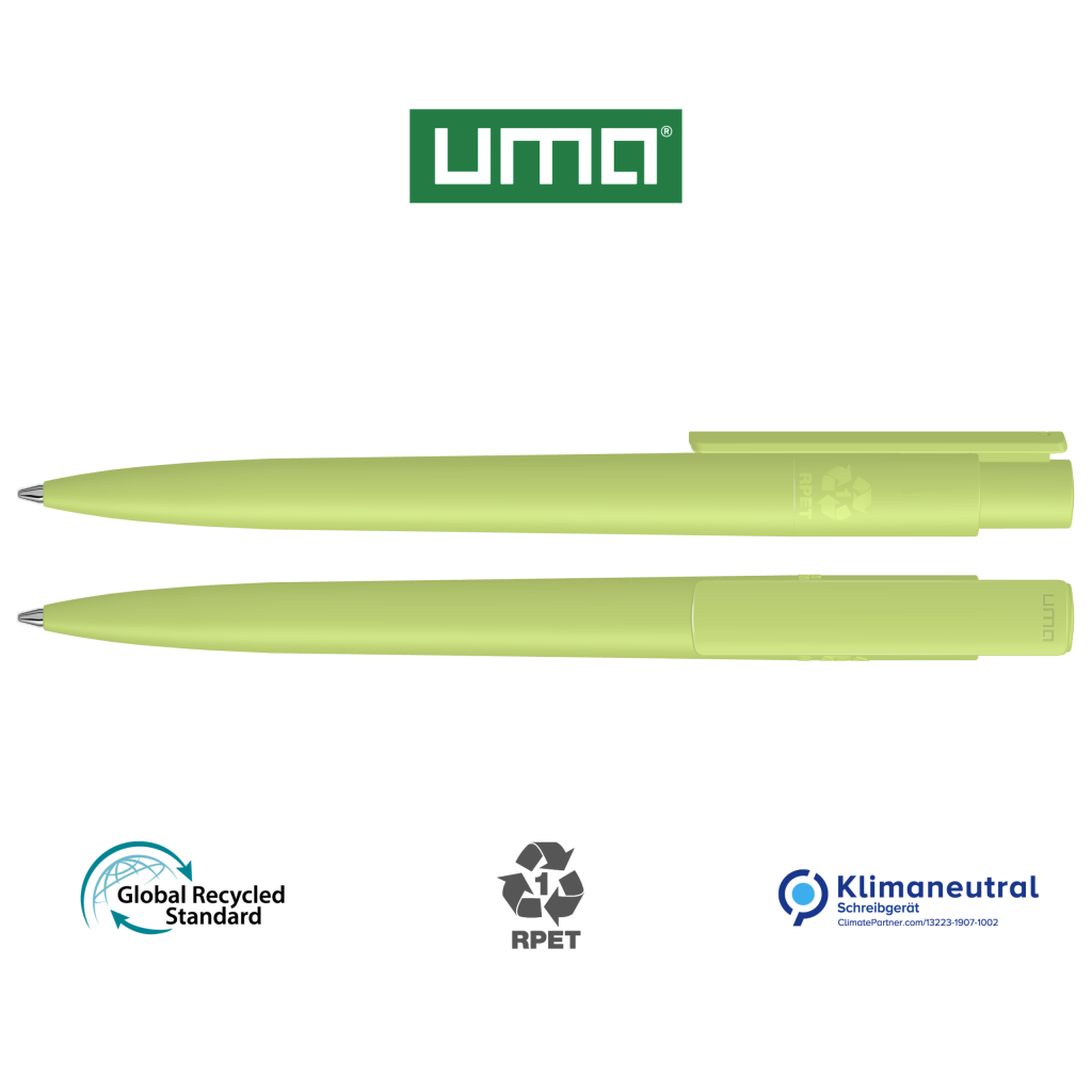 Retractable ballpoint pen made from recycled PET material with opaque matt housing and clip.