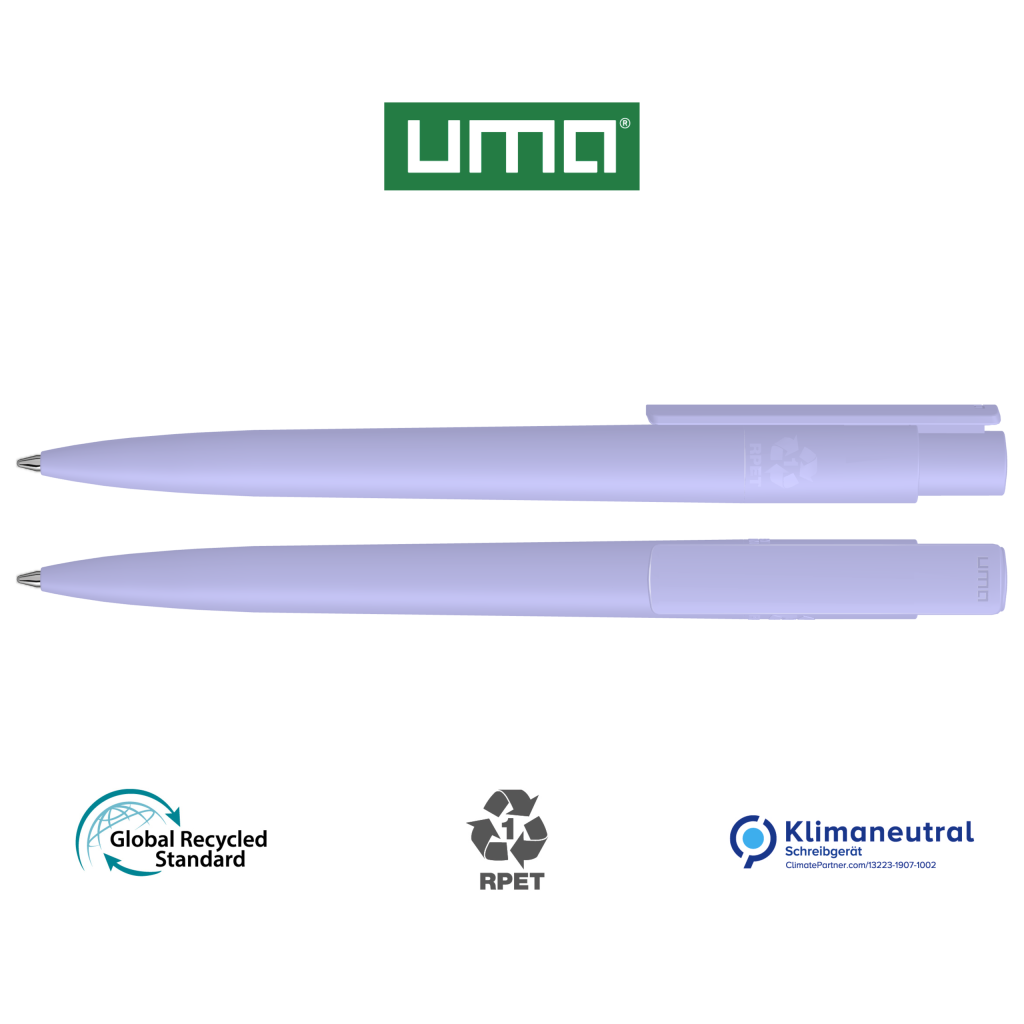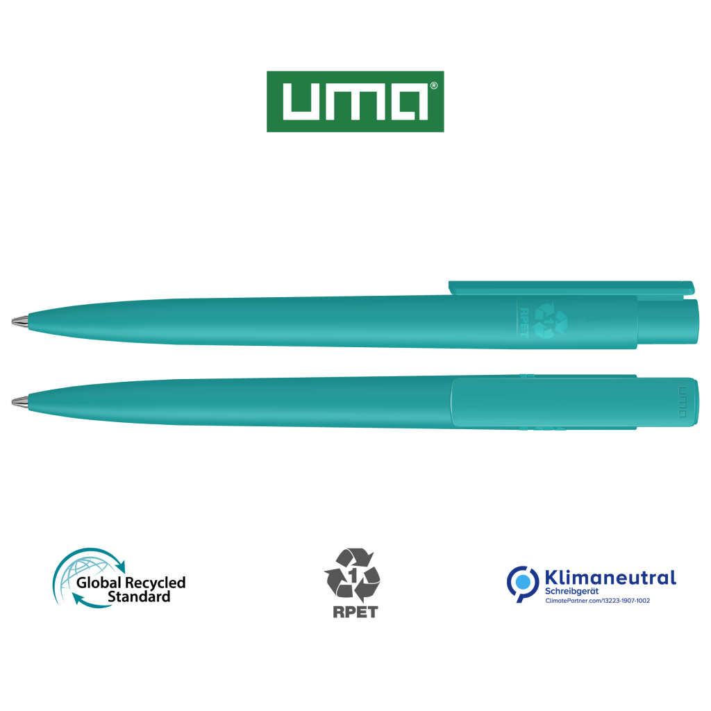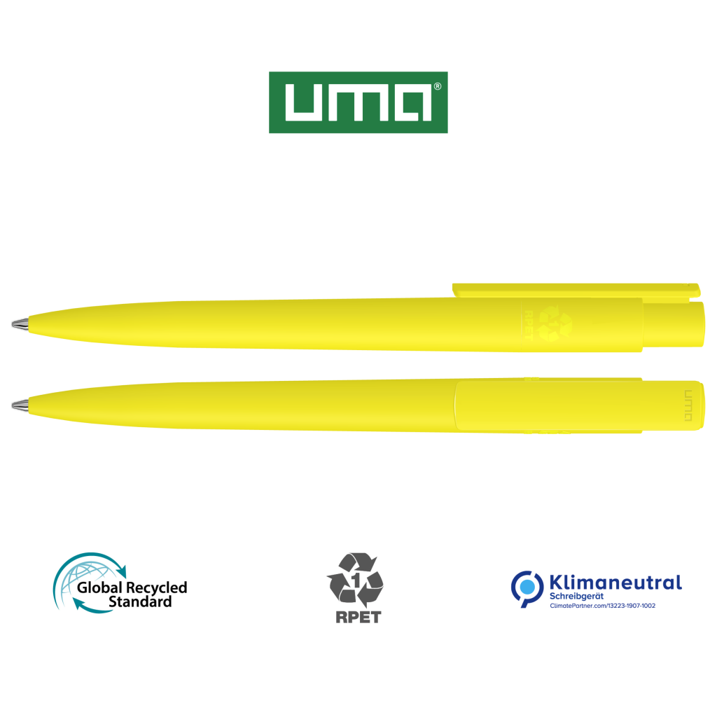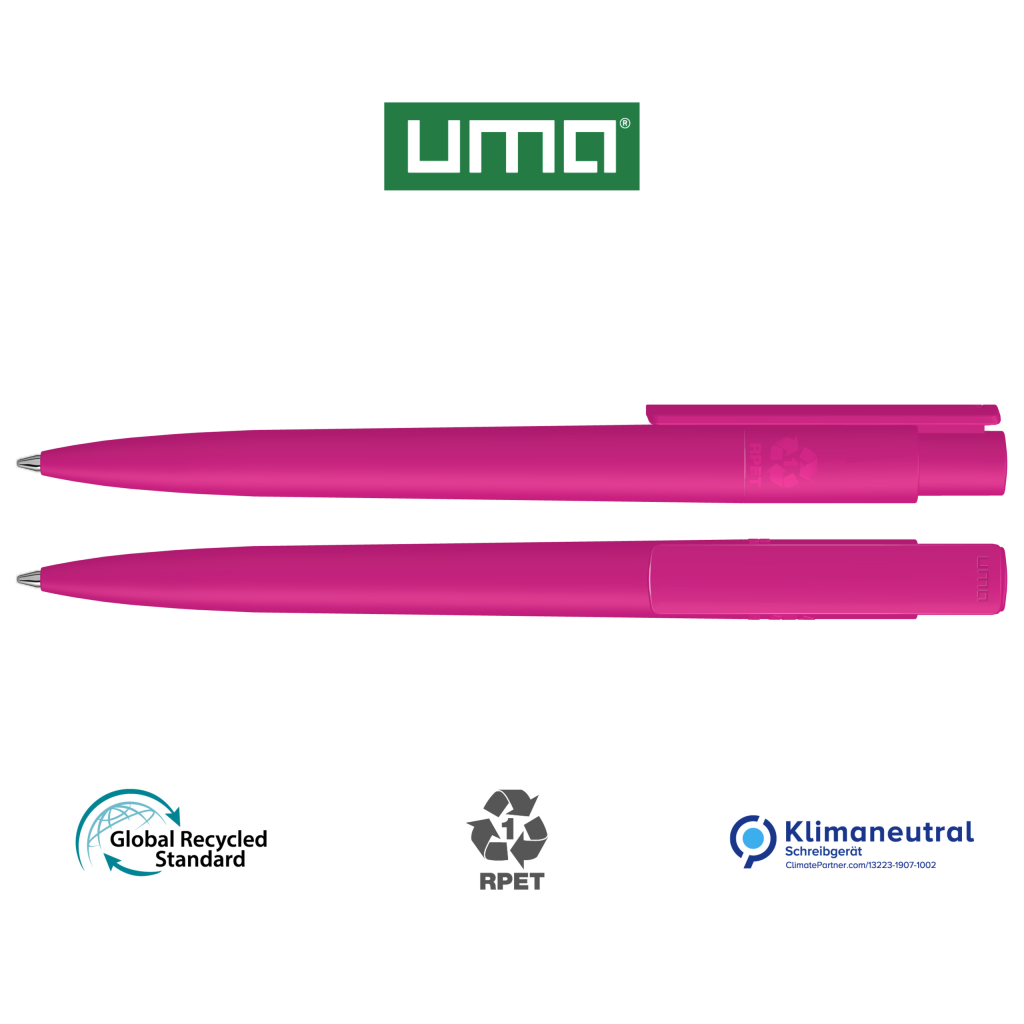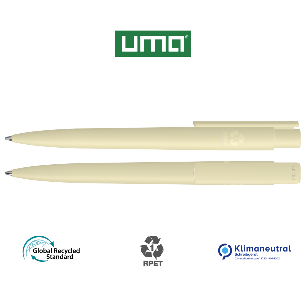 Retractable ballpoint pen made from recycled PET material with opaque matt housing and clip.