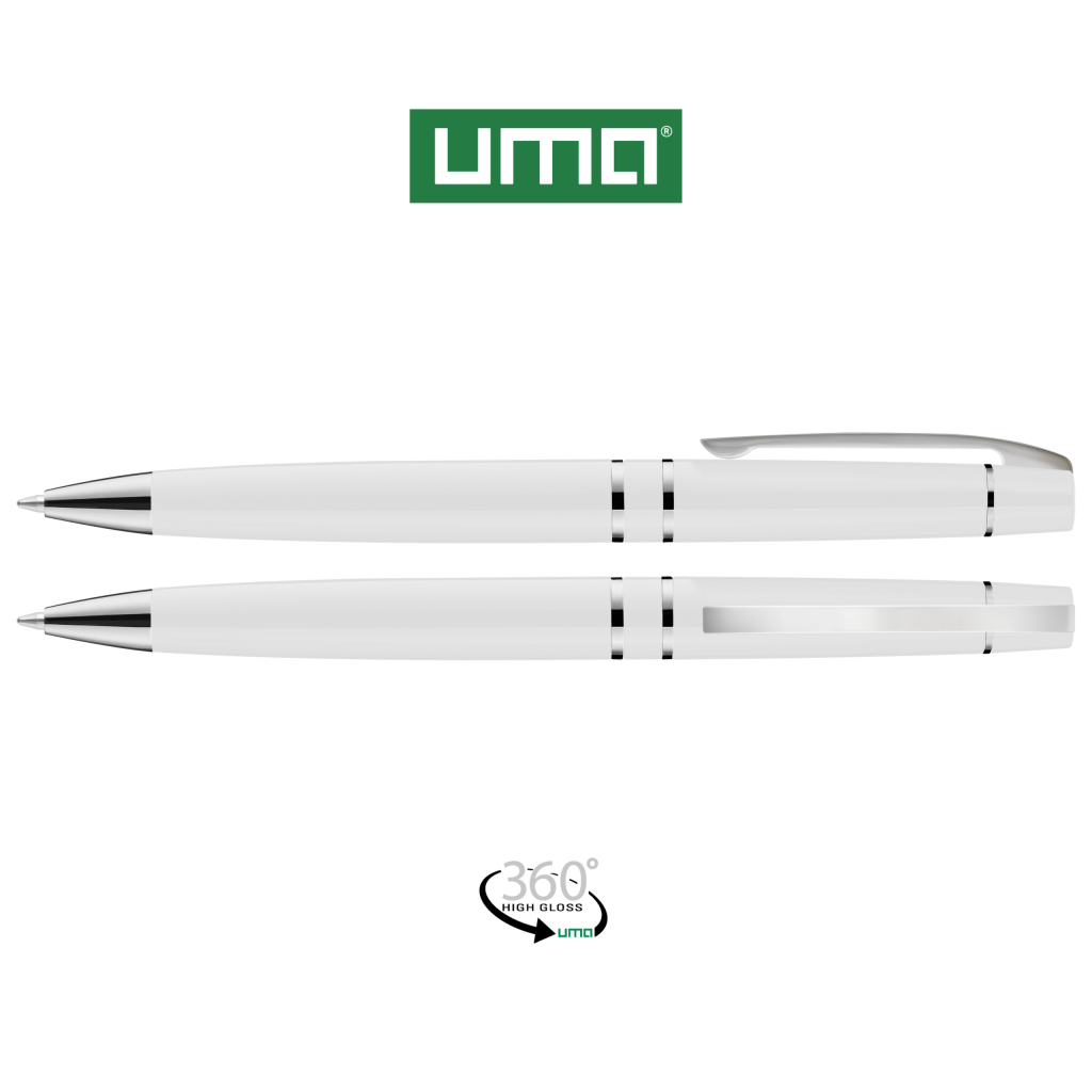 Slim metal twist ballpoint pen with soft twist mechanism and spring-mounted clip. Metal fittings chrome plated.