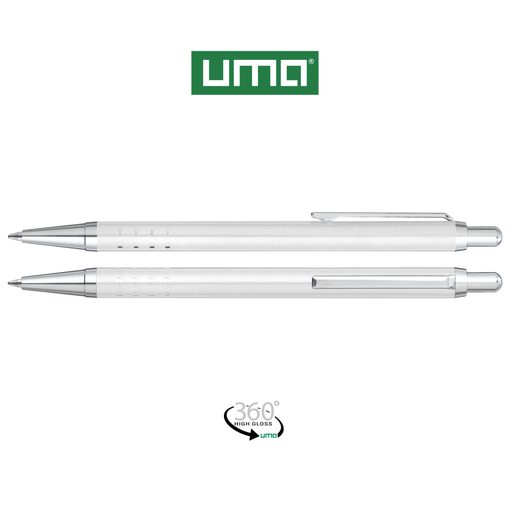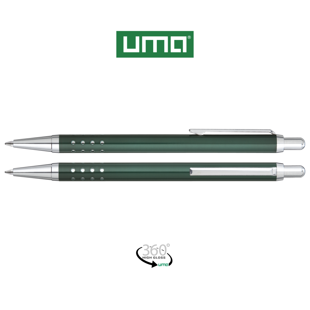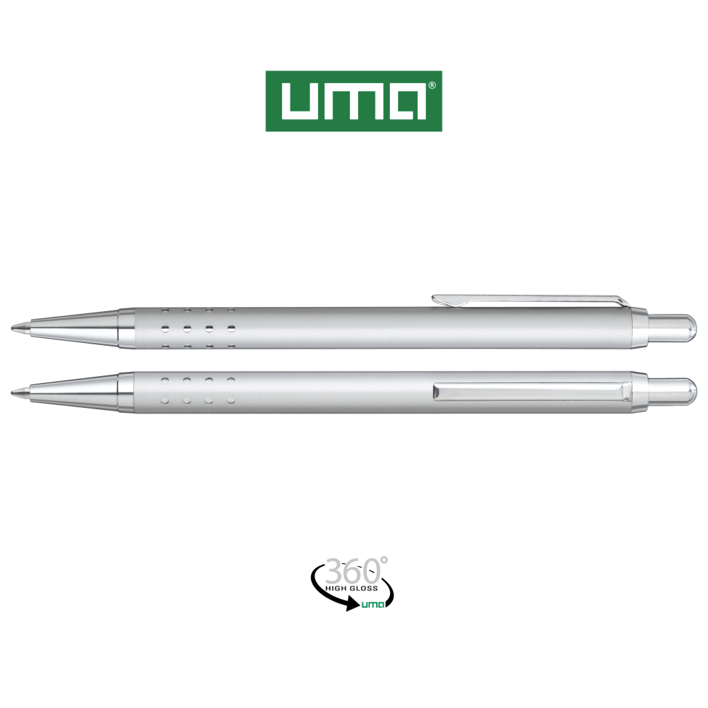 Slim metal retractable ballpoint pen with lacquered housing and perforated grip zone. Metal fittings chrome plated.