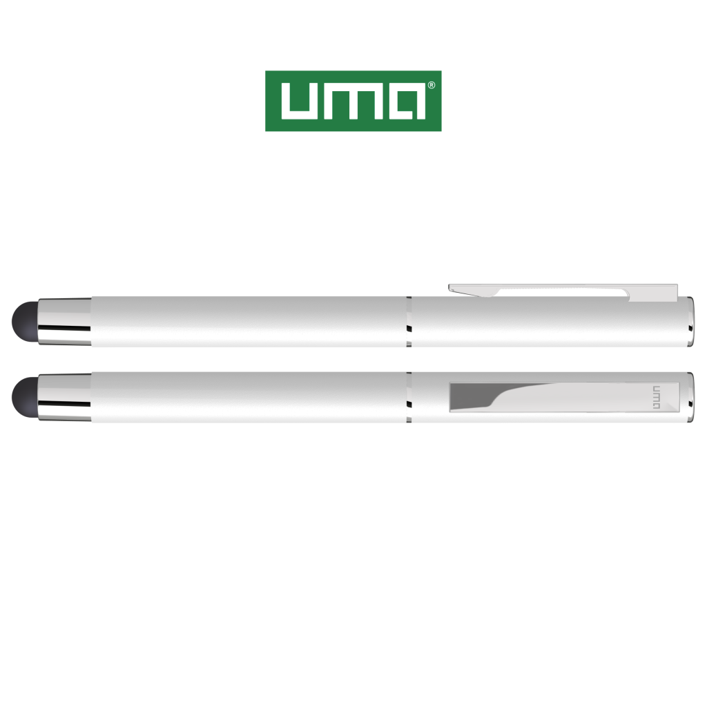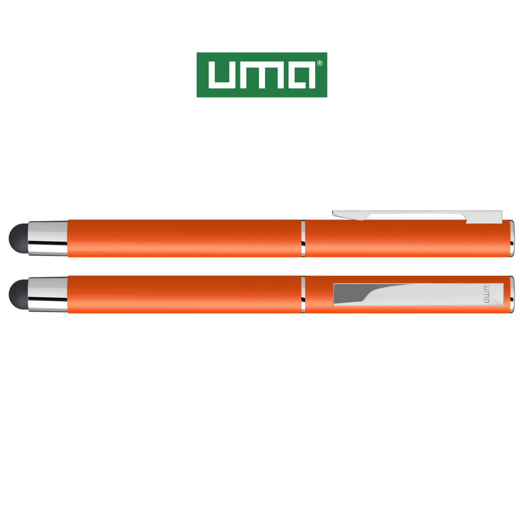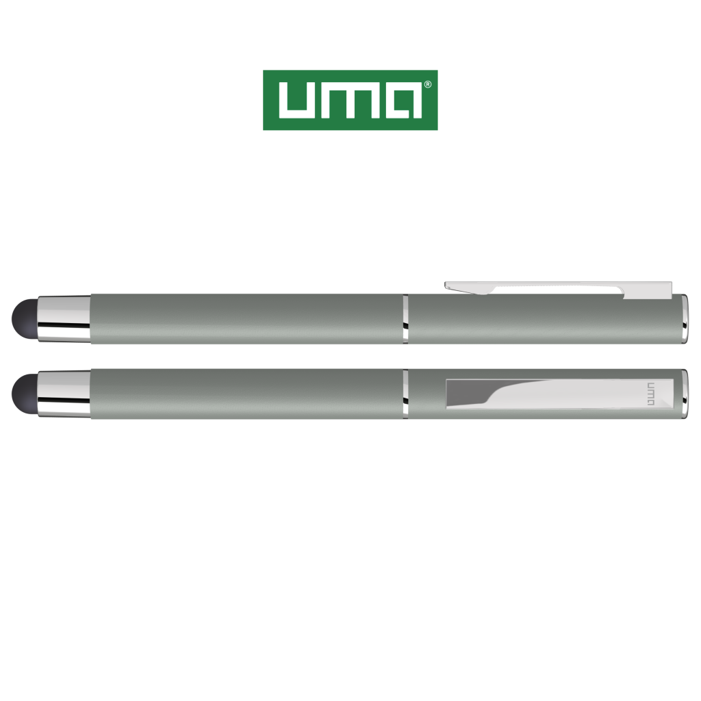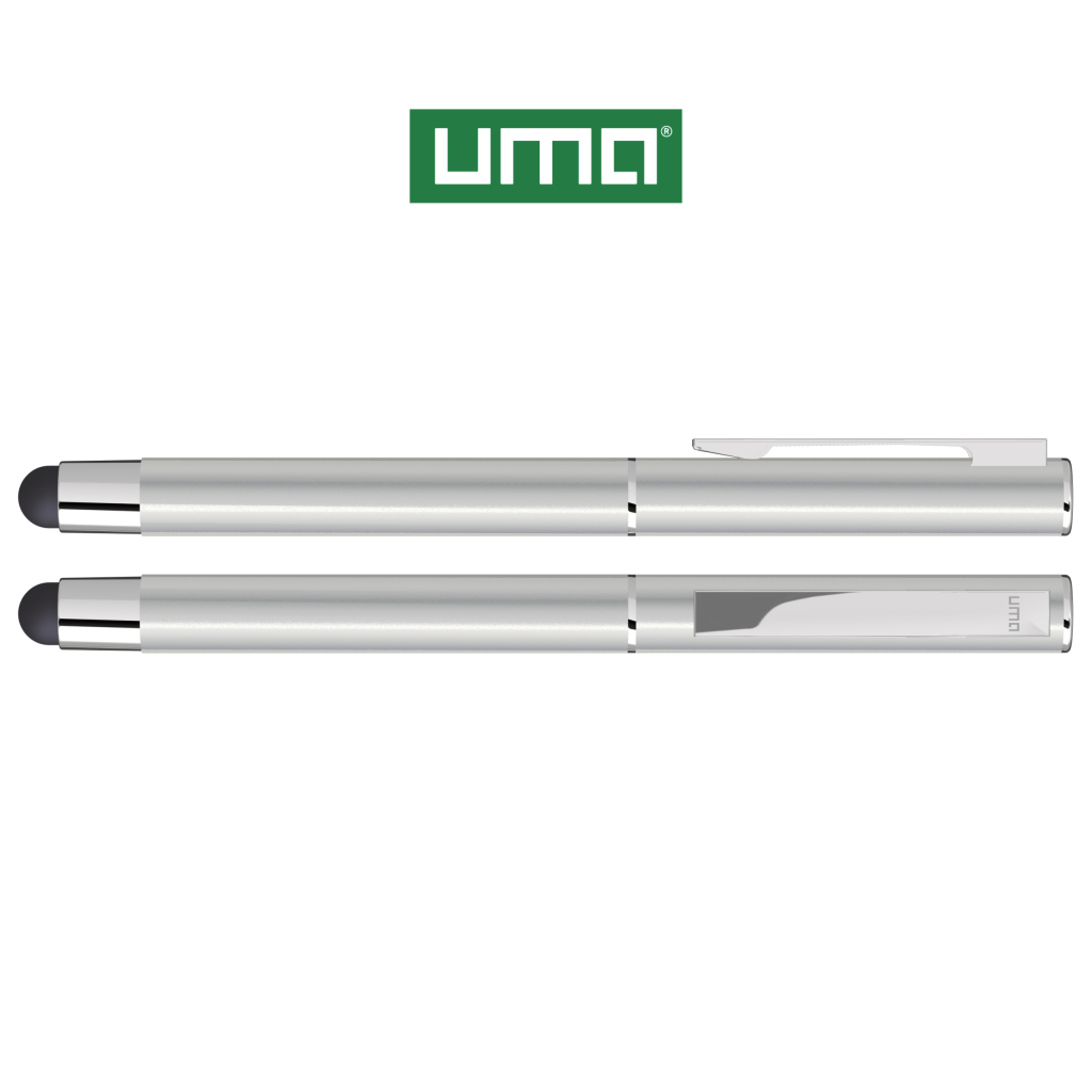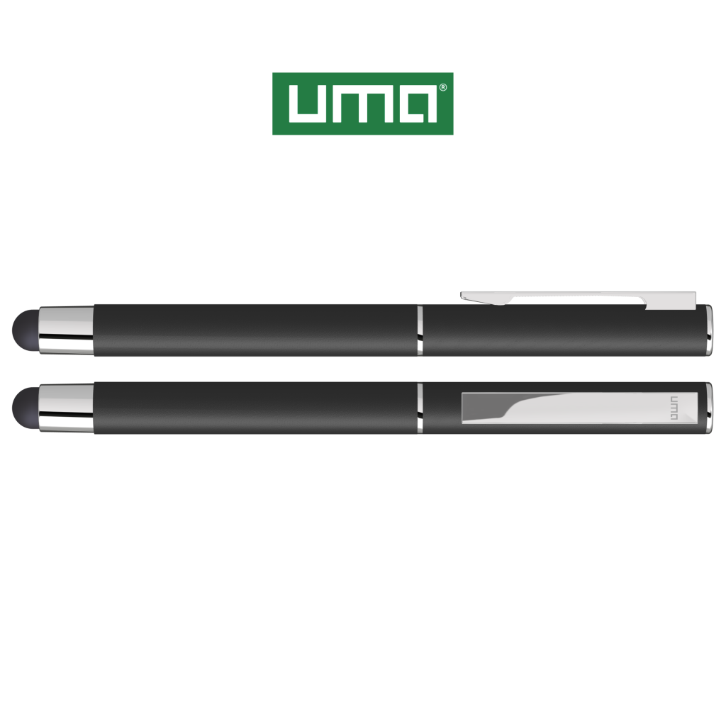 Metal rollerball with matt housing. Metal clip and ring chrome plated, grip zone black. Black rubber ball with integrated touch screen control.