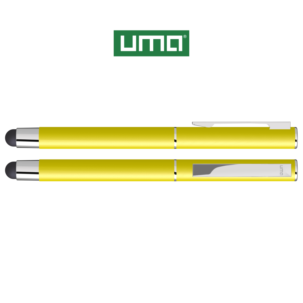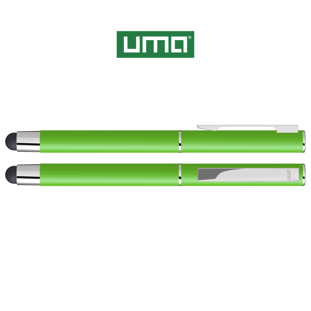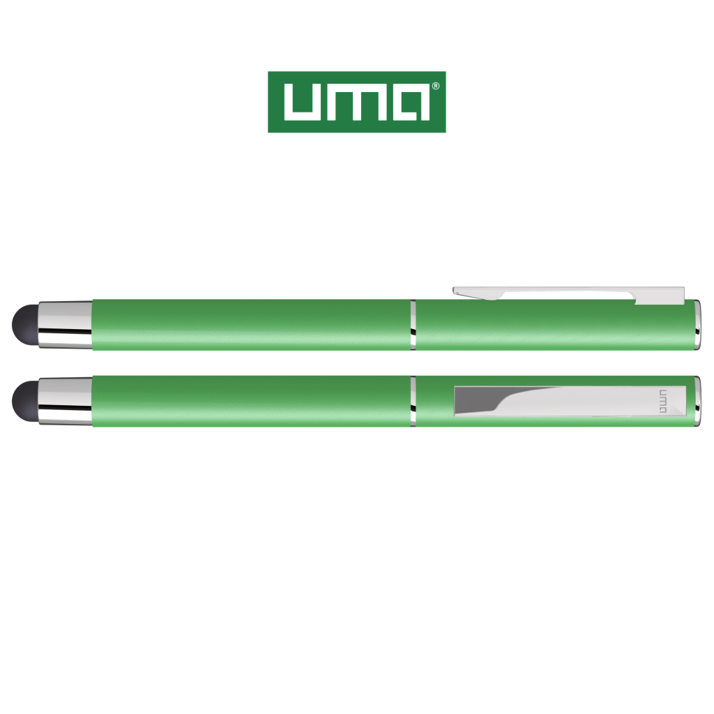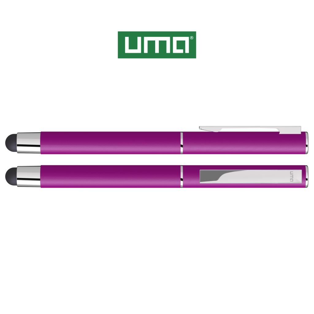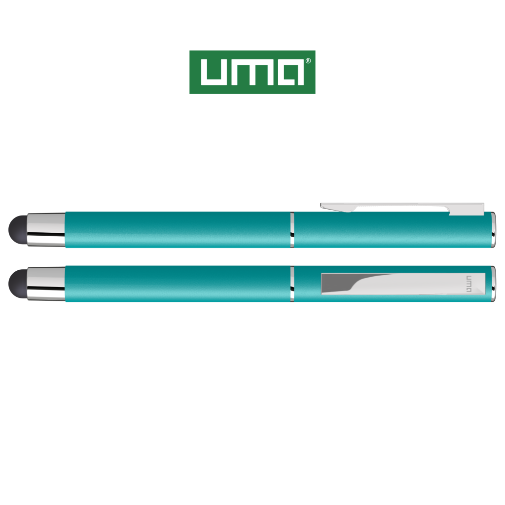 Metal rollerball with matt housing. Metal clip and ring chrome plated, grip zone black. Black rubber ball with integrated touch screen control.