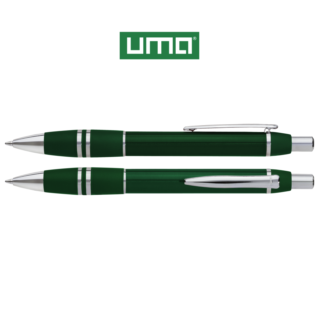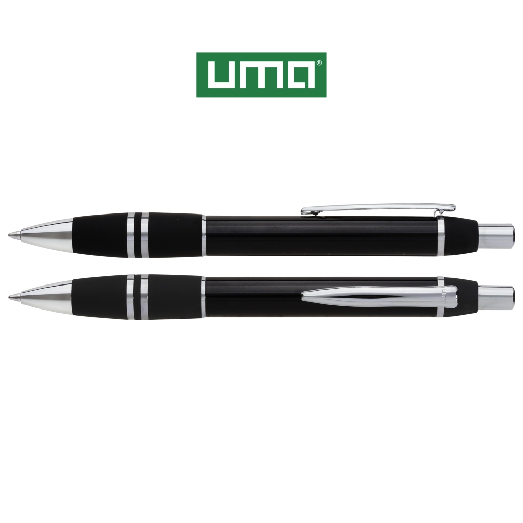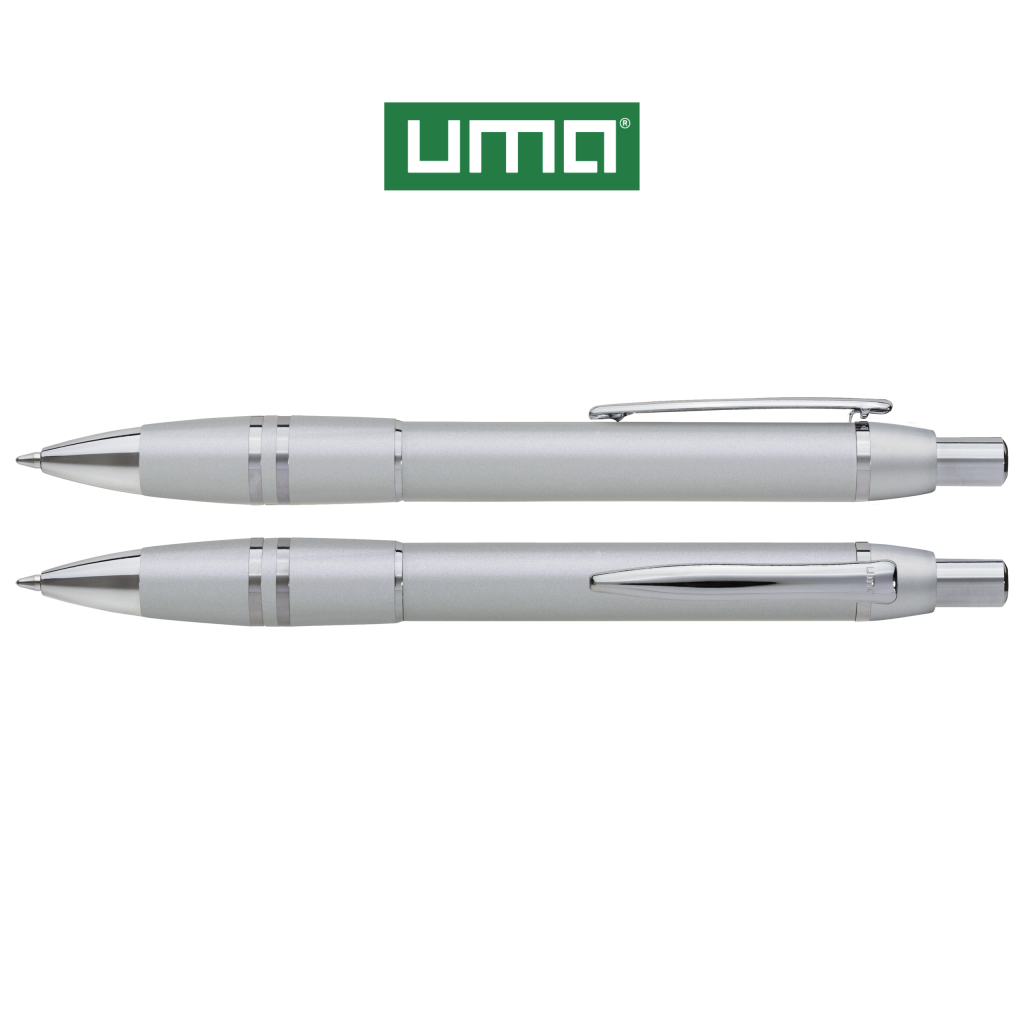 Metal retractable ballpoint pen with glossy chrome fittings.