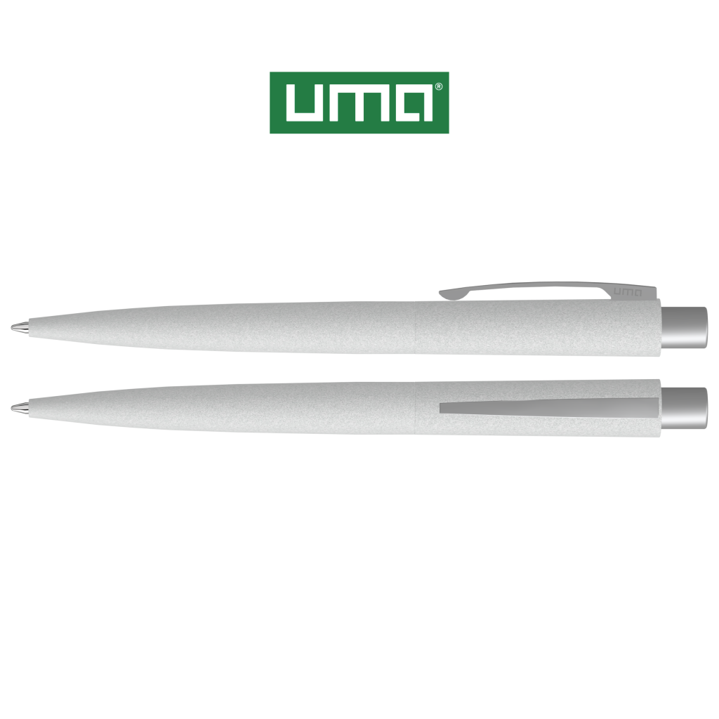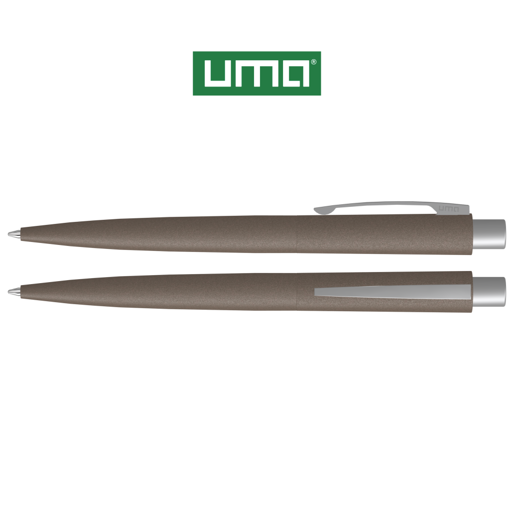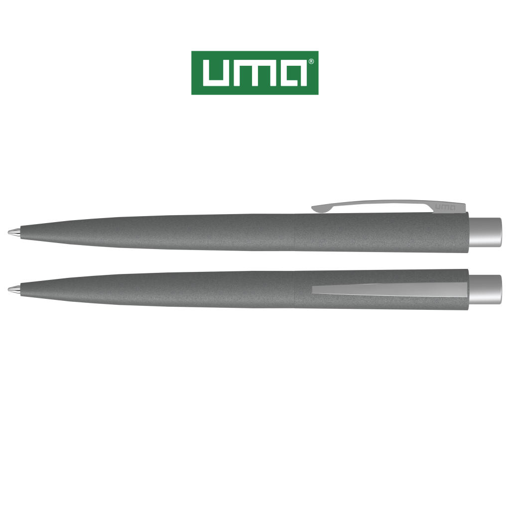 Metal retractable ballpoint pen with reconstructed concrete or stone optics and haptics. Metal clip and push-button matt chromed.