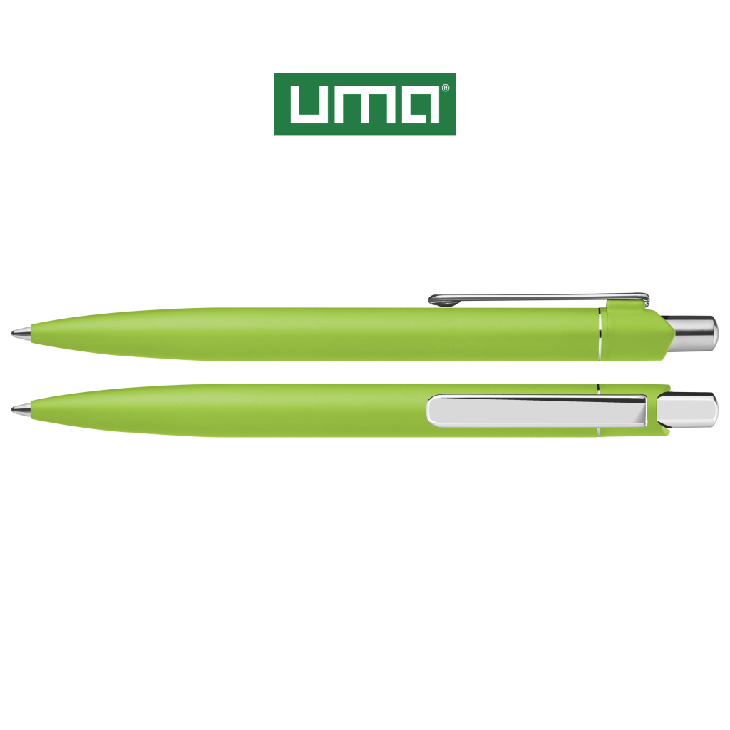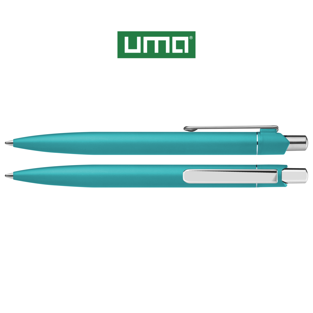 Metal retractable ballpoint pen with matt lacquered aluminium housing. Metal clip and push-button chrome plated.