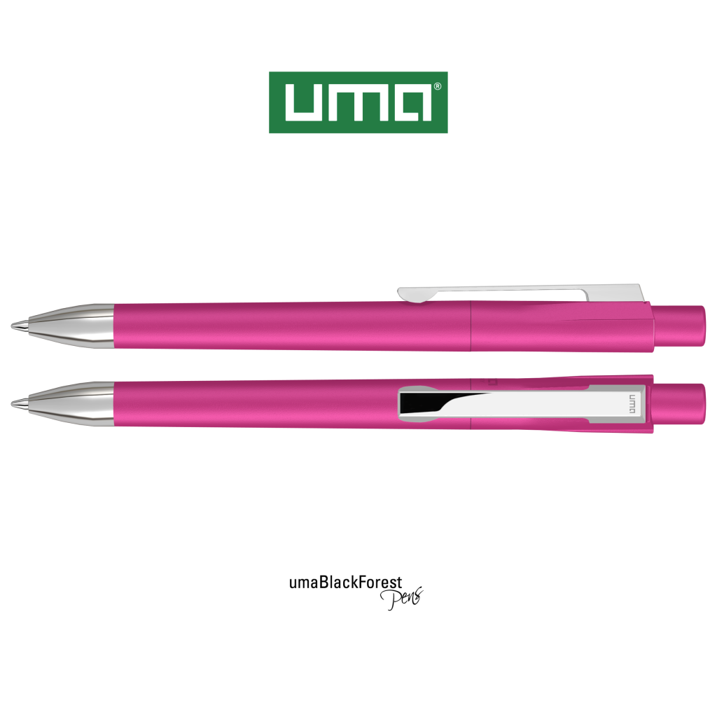 Retractable ballpoint pen with opaque matt housing. Heavy metal tip and metal clip chrome plated.