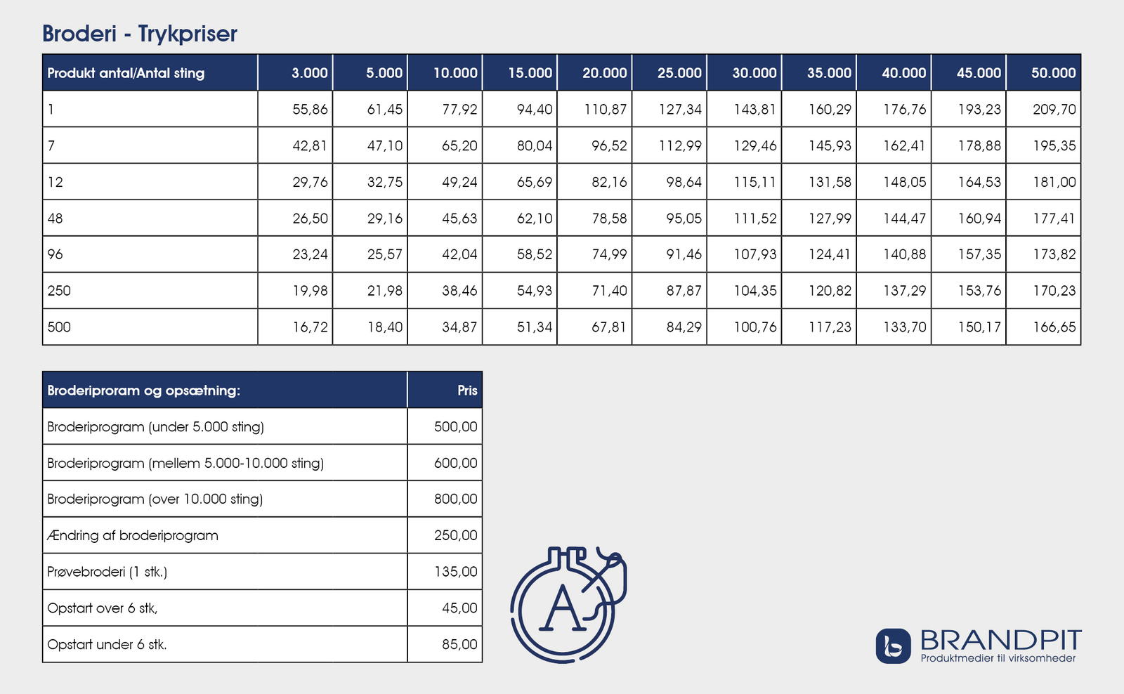 Tag endelig kontakt til os for at høre om jeres muligheder. Vælg et produkt og send os en forespøgsel sammen med jeres logo, så vender vi tilbage med jeres muligheder.
