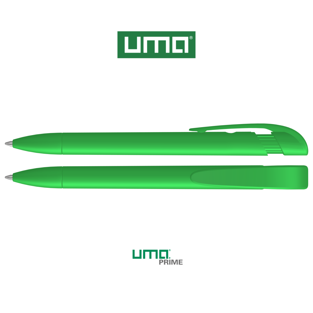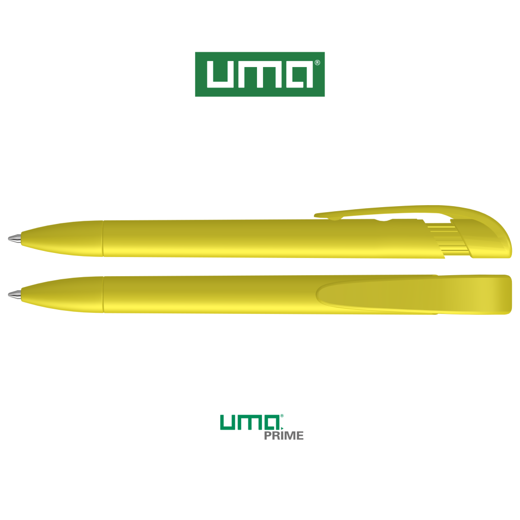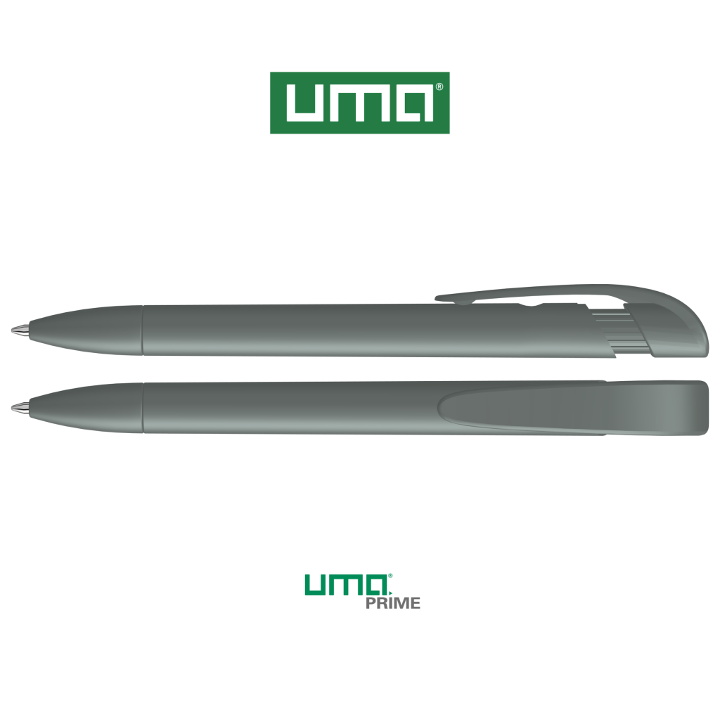 Retractable ballpoint pen with opaque matt housing, wide curved clip button and tip.
