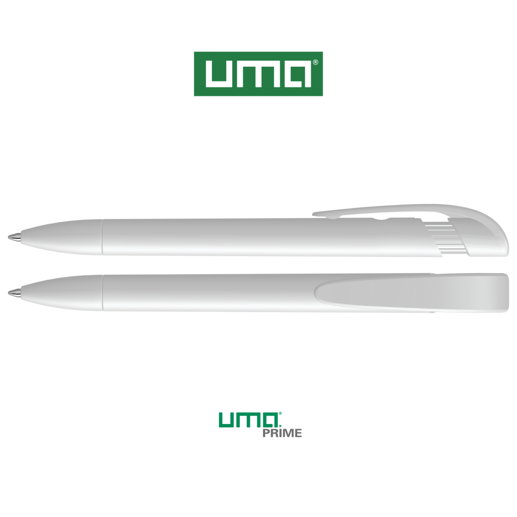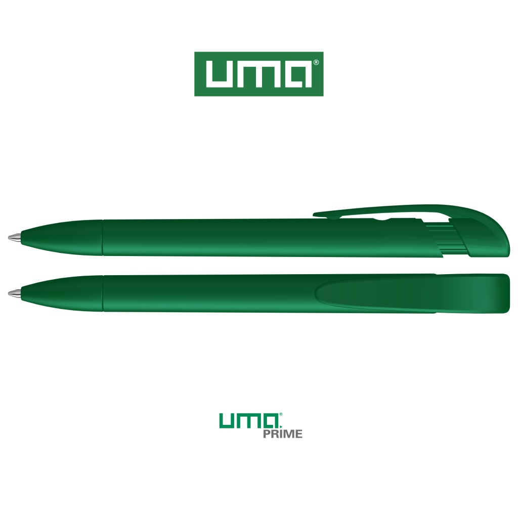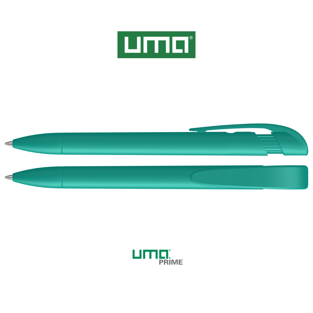 Retractable ballpoint pen with opaque matt housing, wide curved clip button and tip.