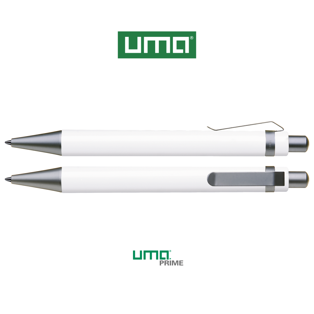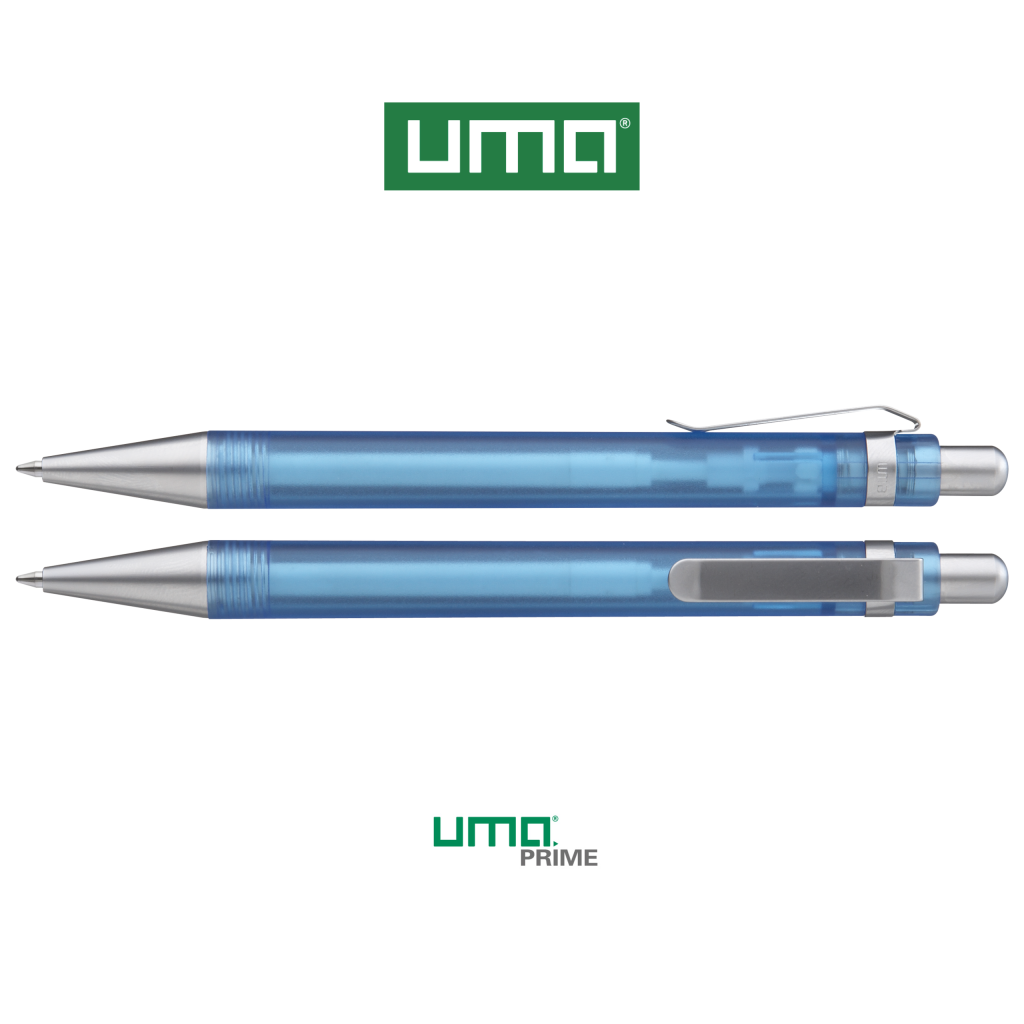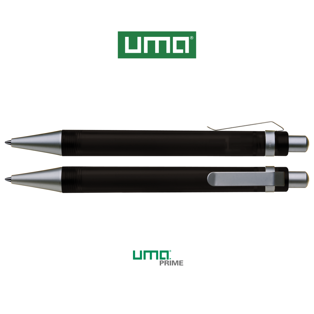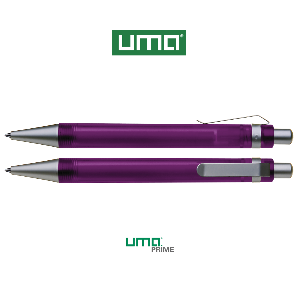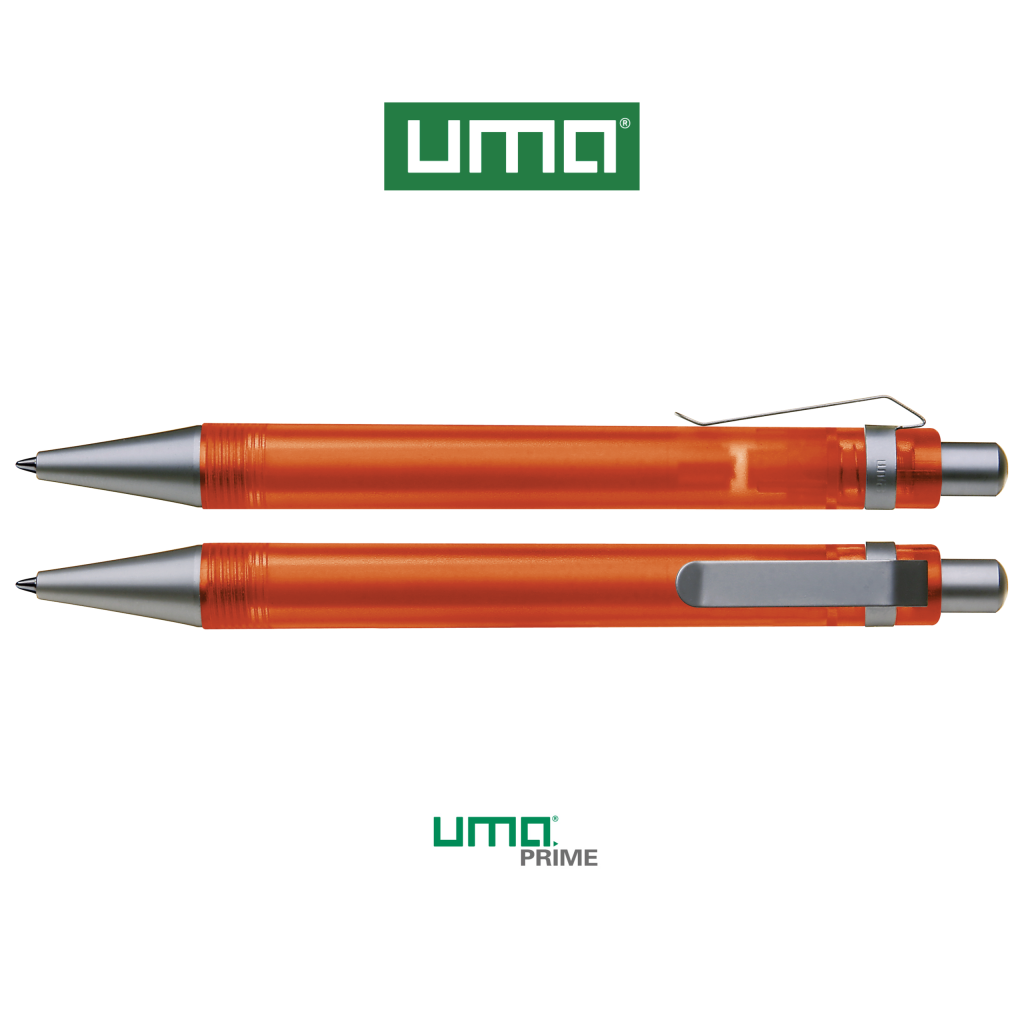 Retractable ballpoint pen with transparent frosted or opaque housing. Metal push-button, metal clip and metal tip matt chromed.