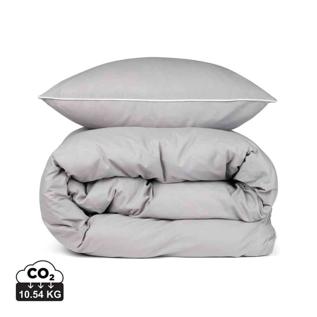 Dette elegante sengetøjssæt har et ensfarvet design med kontrastfarvede pipingdetaljer langs kanterne, der giver dit sengetøj et sofistikeret look. Sættet består af to pudebetræk (50 x 60 cm) og to dynebetræk (150 x 210 cm) og sikrer et koordineret og elegant look til din seng. Dette sengetøjssæt fås kun i svenske standardstørrelser. Da sengetøjsstørrelser kan variere i Europa, anbefaler vi, at du tjekker målene for at sikre, at det passer. Organic Content Standard (OCS) verificerer økologisk dyrket materiale og sporer det fra kilde til slutprodukt. Dette produkt indeholder 98 % OCS-certificeret økologisk bomuld.